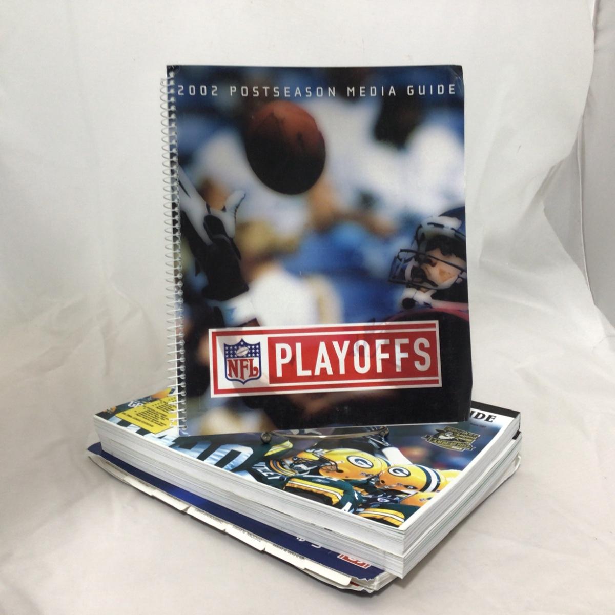 Five NFL media guide booklets. Please see photos for details and condition. ::: Shipping is available on this lot. If you require shipping you must let us know at the close of the auction. We will coordinate with you after the item has been won. Shipping fees will include insurance up to or exceeding the value of all items being mailed. If you have any questions regarding this lot please contact the auctioneer either via this website, by direct email or by phone. PICK UP TIMES and other important information can be found in the TERMS and DESCRIPTION of the auction. Please take a look for pertinent information. Thanks!