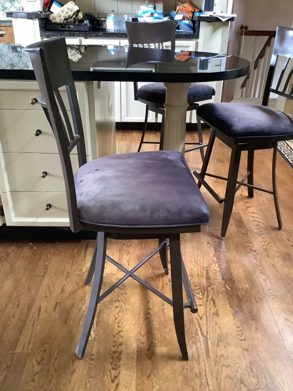 Three Swivel Bar Stools Seats are 42” Tall Metal Framed Very Sturdy