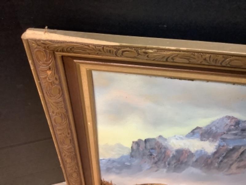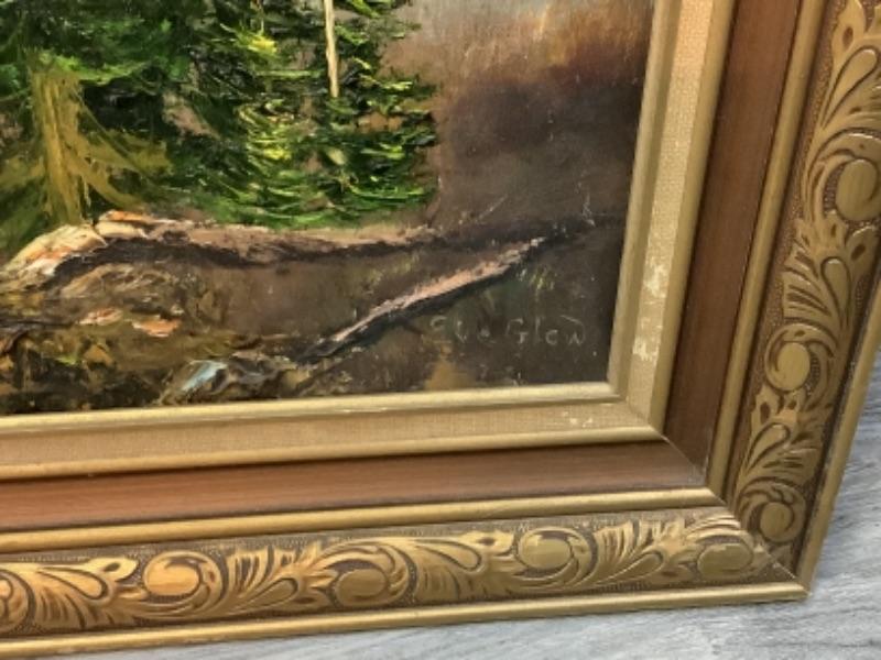 Eve Glen signed framed oil on board has some minor damage (see photos) measures 29” x 25”