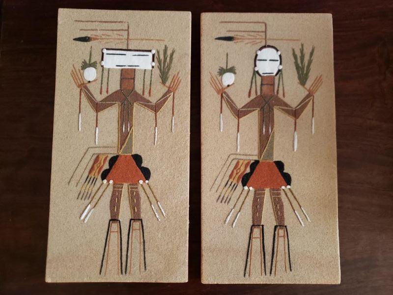 2-374: (2) Sandpaintings with Artist Info. On Backside