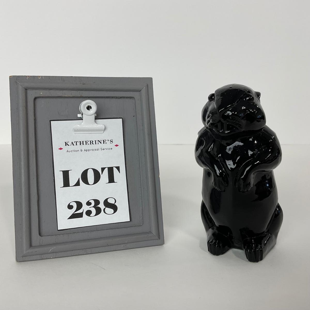 One Boyd Imperial marked black woodchuck beaver. This piece has no damage, and appears to be in great shape with no visable chips, cracks, or broken pieces. 2 1/2 inches wide by 4 1/2 inches tall. Please see photos for details and condition. Any condition statement is given as a courtesy to a client, is an opinion, and should not be treated as a statement of fact. Reference to condition written, oral or within a condition report shall not be regarded as a full account of condition and may not include all defects, alterations, or restorations. Absence of a condition report does not imply a lot is flawless or lacking imperfections or damage. Katherine’s Auction & Appraisal Service shall have no responsibility for any error or omission. Returns shall not be accepted on the basis of condition. ::: Shipping is available on this lot. If you require shipping you must let us know at the close of the auction. We will coordinate with you after the item has been won. Shipping fees will include insurance up to or exceeding the value of all items being mailed. If you have any questions regarding this lot please contact the auctioneer either via this website, by direct email or by phone. PICK UP TIMES and other important information can be found in the TERMS and DESCRIPTION of the auction. Please take a look for pertinent information. Thanks!