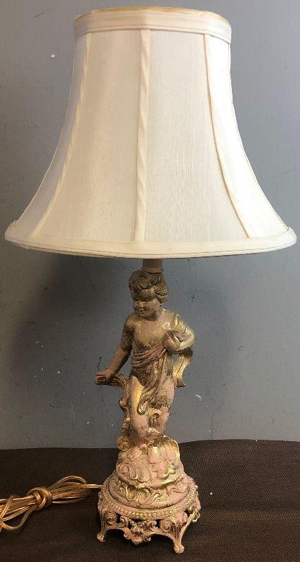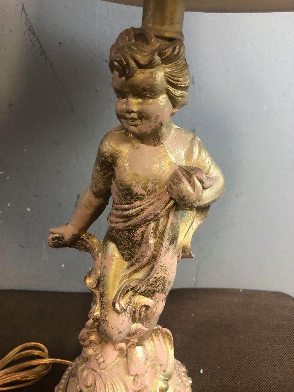 #238 Golden Lovely Cherub Lamp Cast Metal