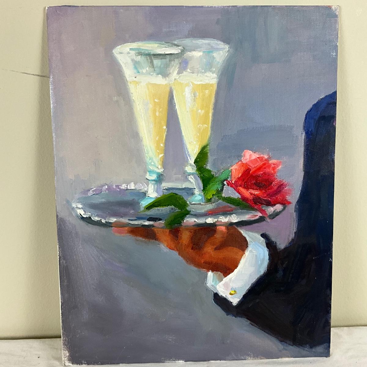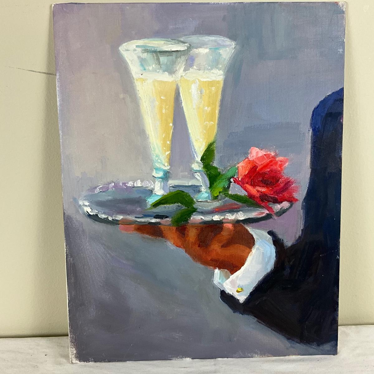 238 Original Oil Painting " Butler with Champagne" by Kathie Rogers