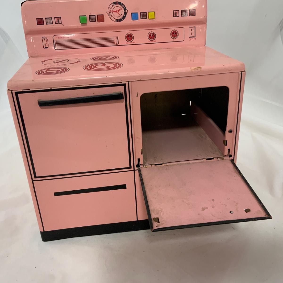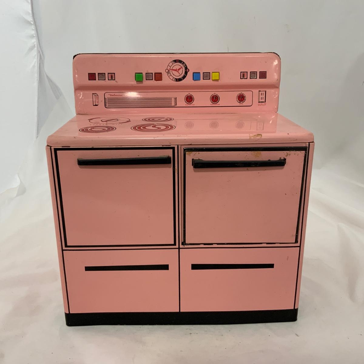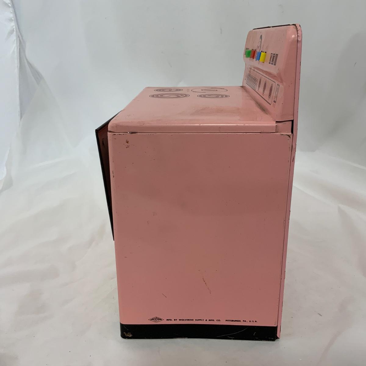 Awesome Pink Wolverine Metal Stove, circa 1950. In awesome condition! Stove measures 12” x 11” x 6.5”. Please see photos for details and condition. ::: Shipping is NOT available on this lot. If you have any questions regarding this lot please contact the auctioneer either via this website, by direct email or by phone. PICK UP TIMES and other important information can be found in the TERMS and DESCRIPTION of the auction. Please take a look for pertinent information. Thanks!