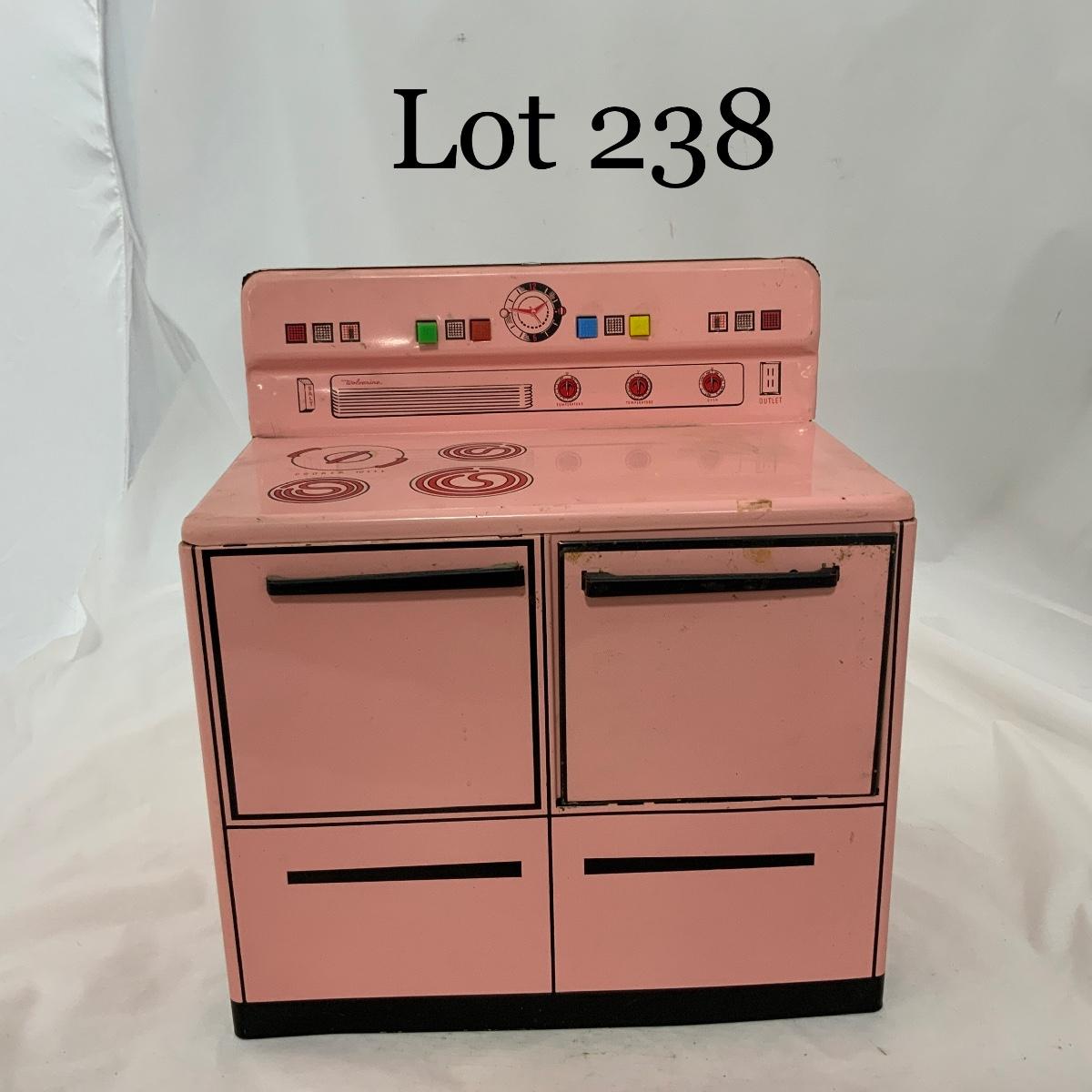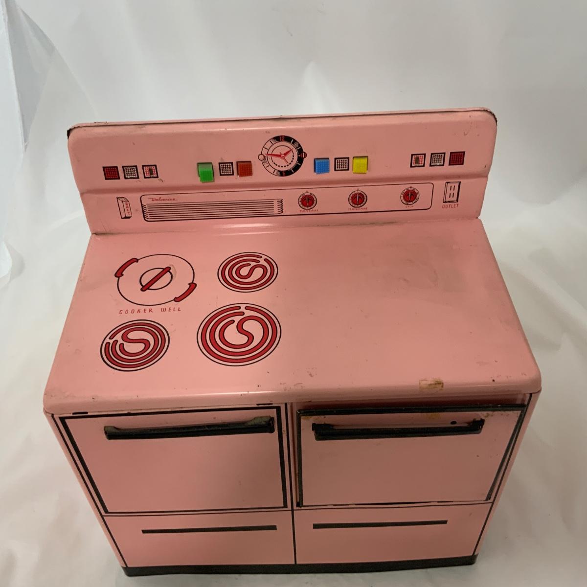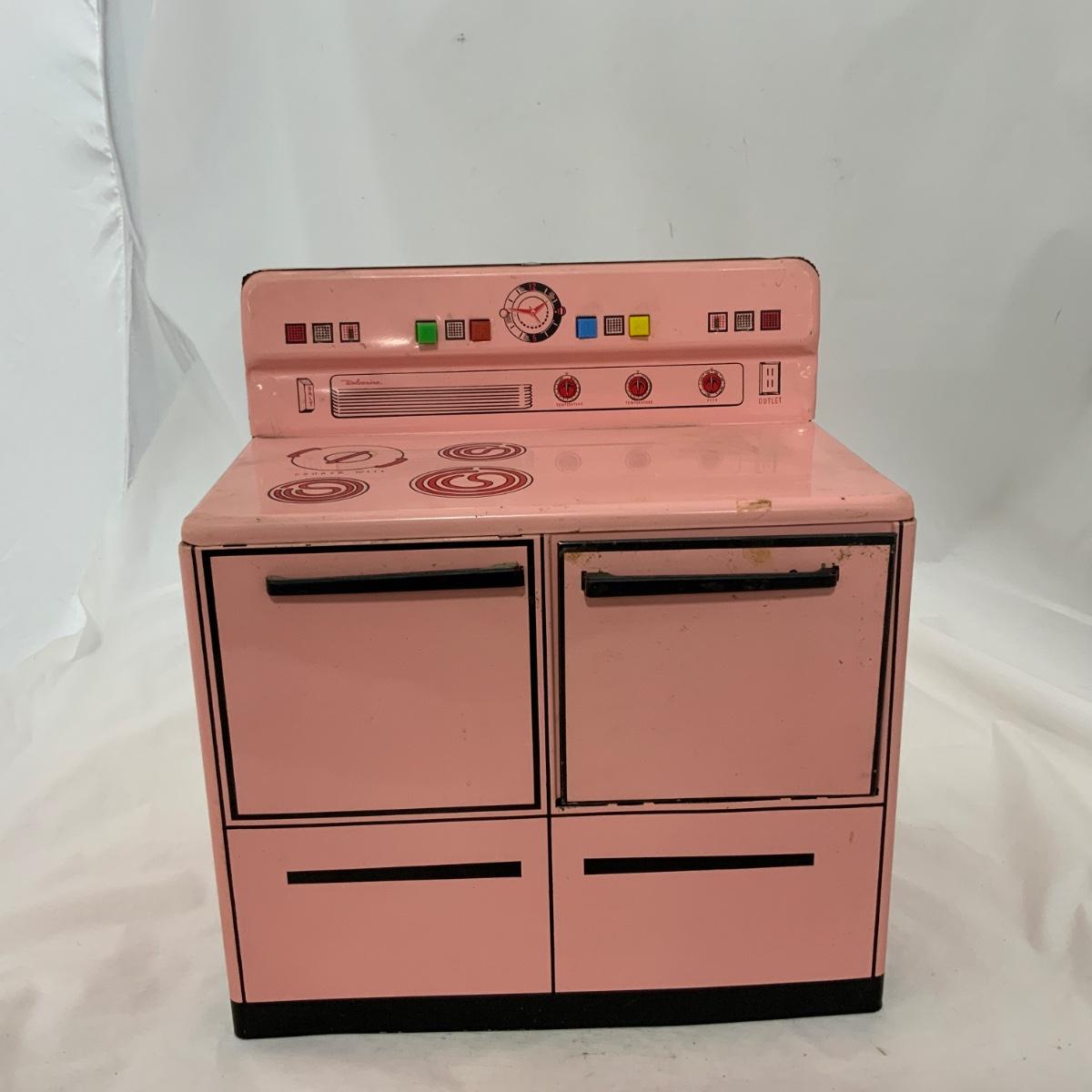Awesome Pink Wolverine Metal Stove, circa 1950. In awesome condition! Stove measures 12” x 11” x 6.5”. Please see photos for details and condition. ::: Shipping is NOT available on this lot. If you have any questions regarding this lot please contact the auctioneer either via this website, by direct email or by phone. PICK UP TIMES and other important information can be found in the TERMS and DESCRIPTION of the auction. Please take a look for pertinent information. Thanks!