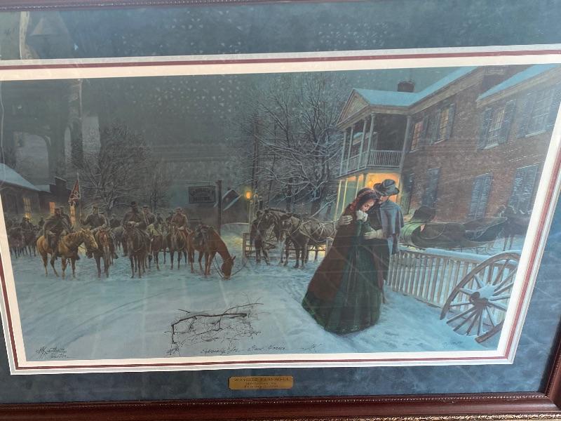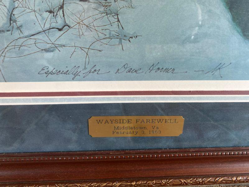 Signed and Numbered Lithograph by Mort Kunstler 1998 entitled " Wayside Farewell" Middletown, Va. February 3, 1863 with personal inscription " Especially for Dave Horner - MK" numbered 10/100 P.E. measuring 27.5" tall x 39" wide