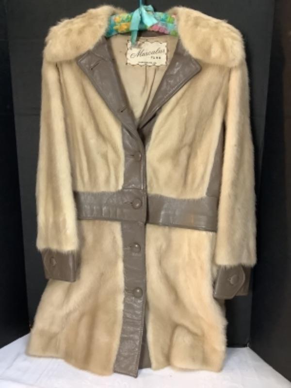 2389 Vintage Muscalus Furs Ladies Adjustable White Mink Coat Golo Leather Boots Pashmina