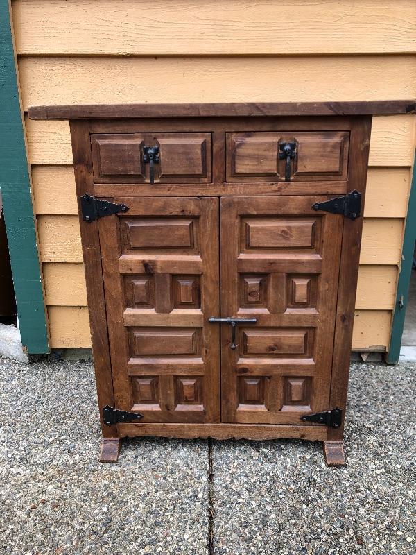 Antique Solid Wood Entry Cabinet, old world charm. 32.5 T x 29.5 W x 13.5 D