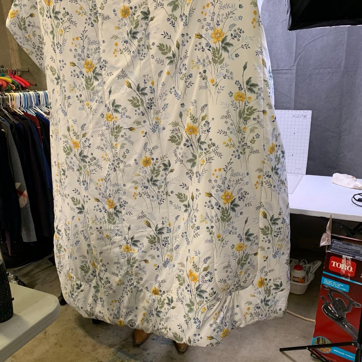 #239 Adorable White/Yellow Floral Twin Bedspread & Pillowcase