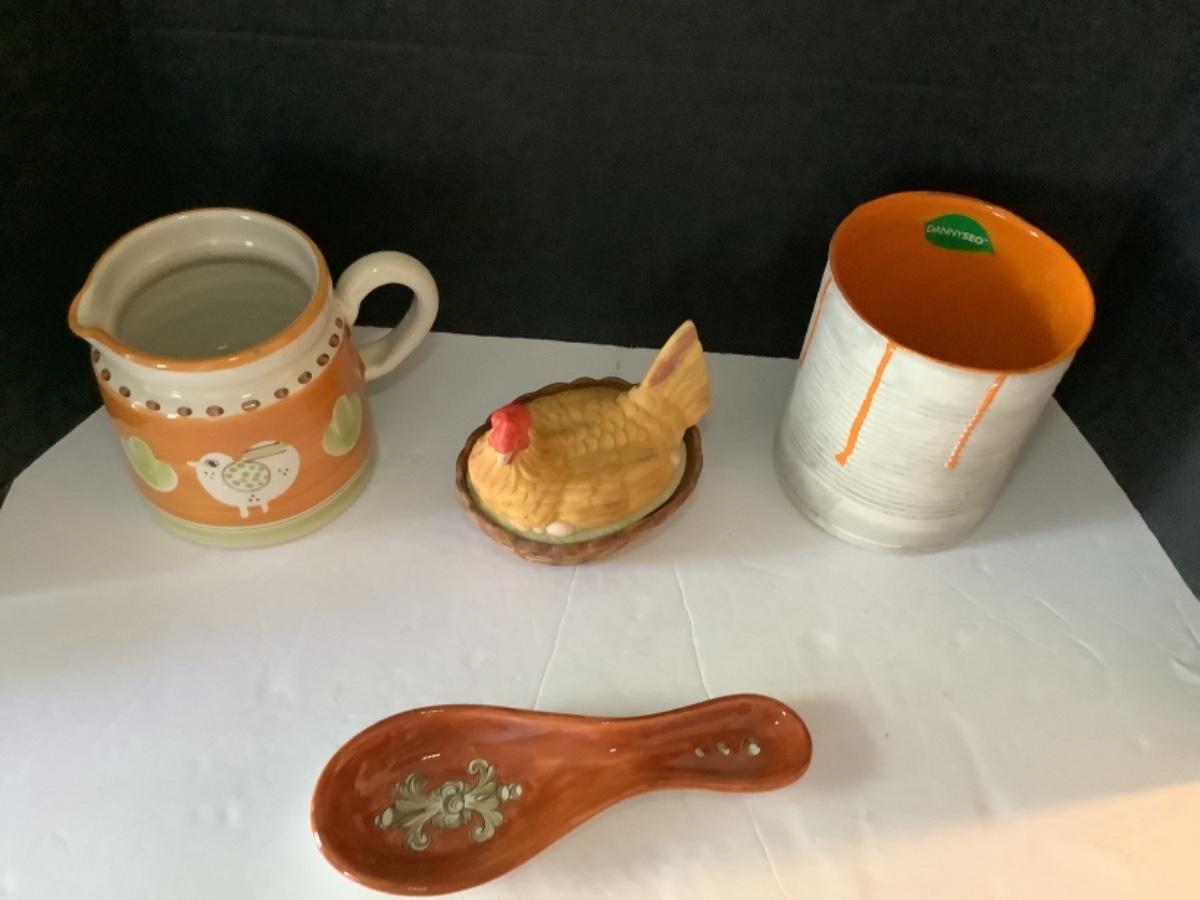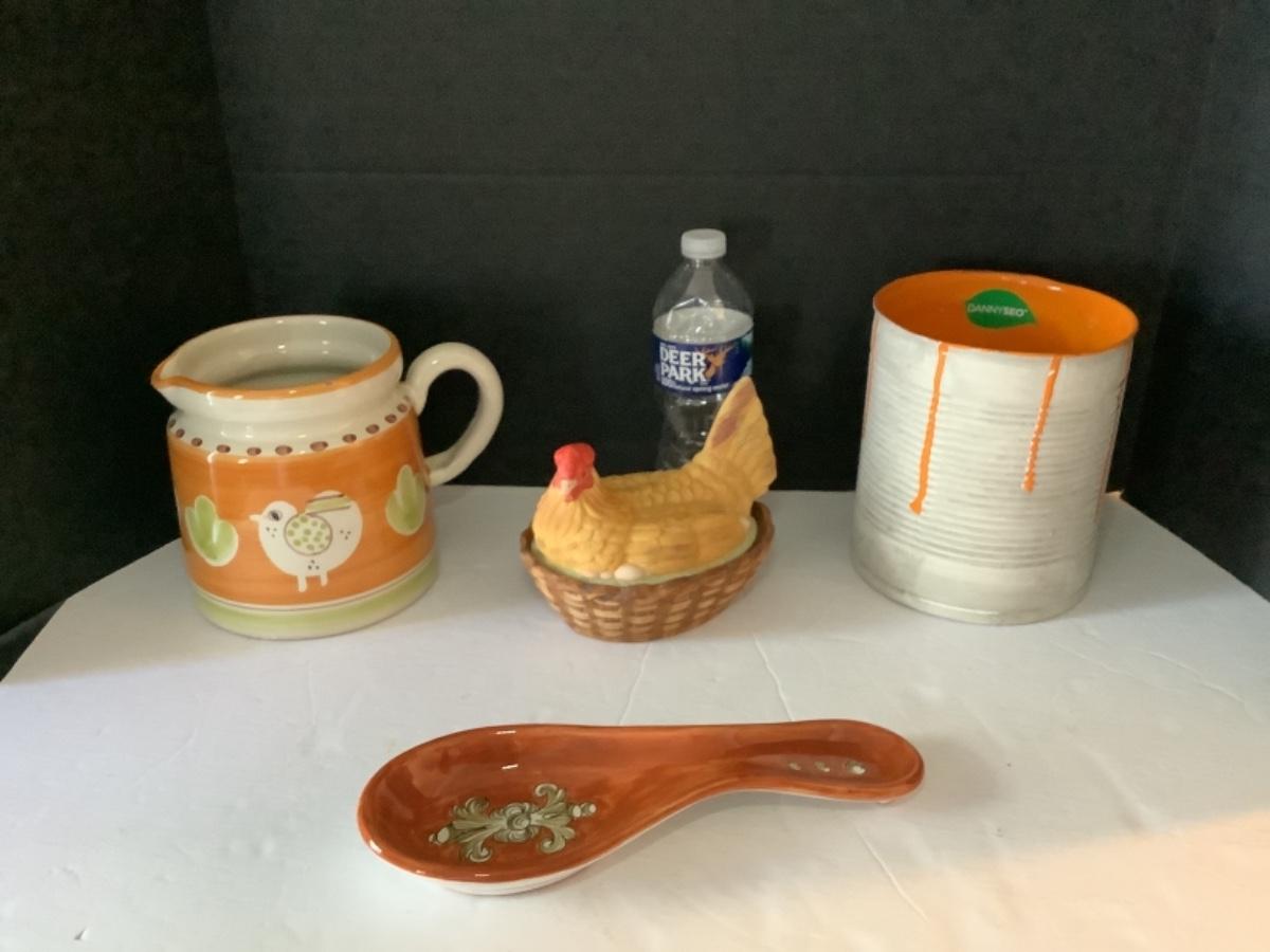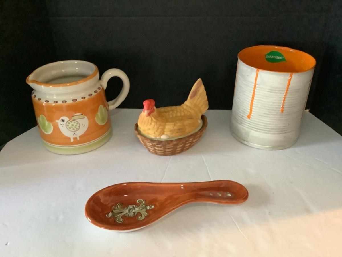 239 Dannyseo Pot/ Italian Spoon Rest/ Porcelain Chicken Dish
