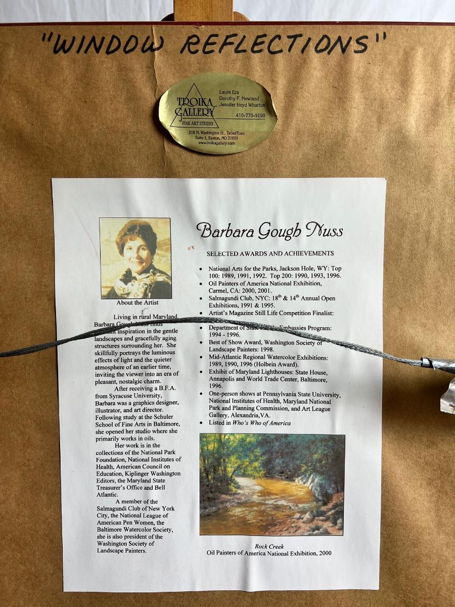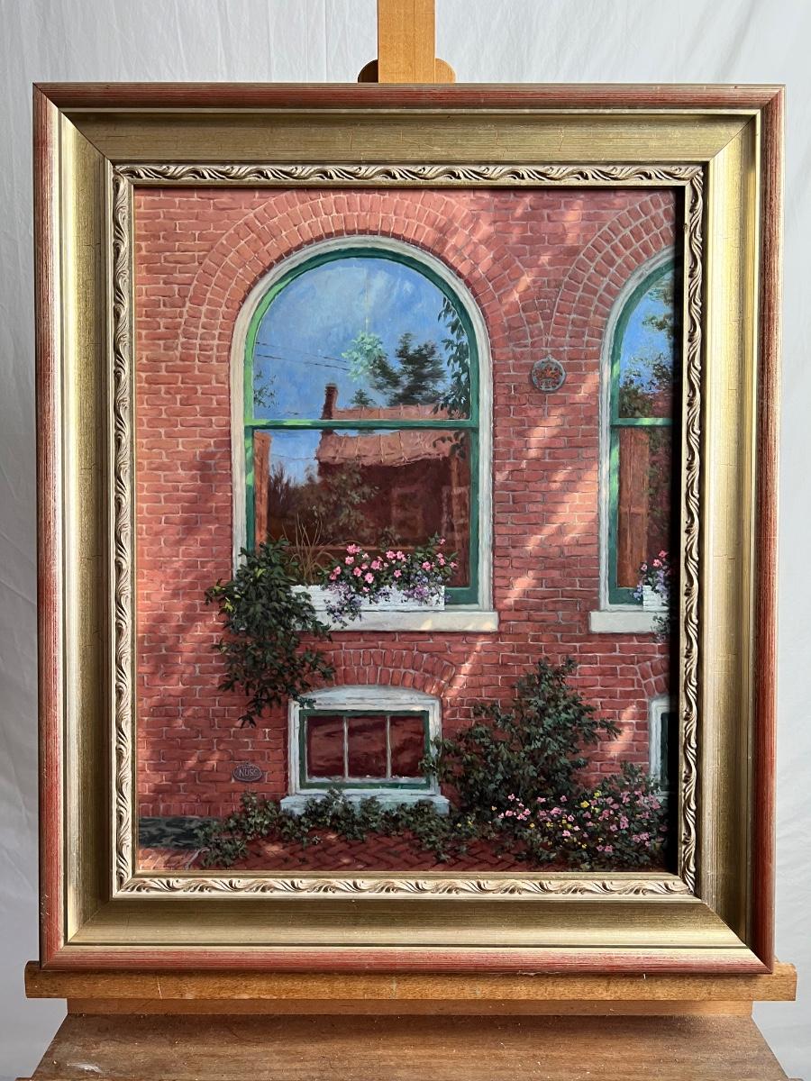Original Oil on Board Framed “Window Reflections” By Barbara Gough Nuss a Featured Troika Gallery artist.