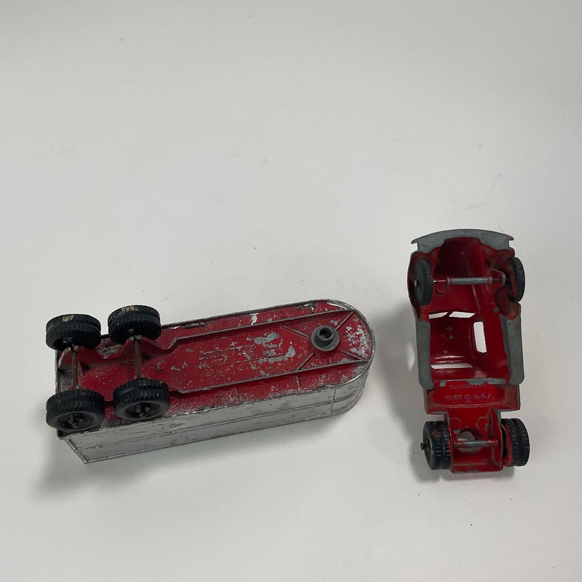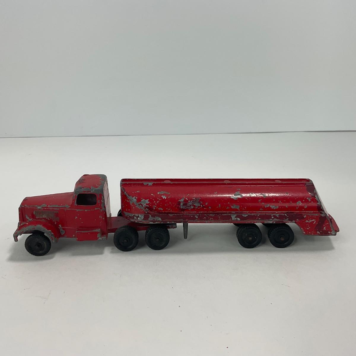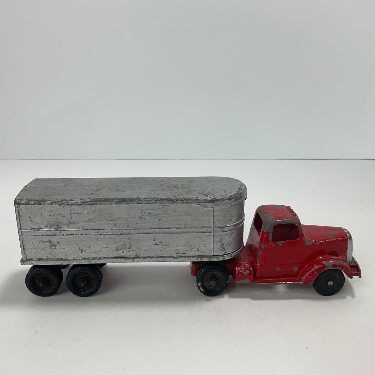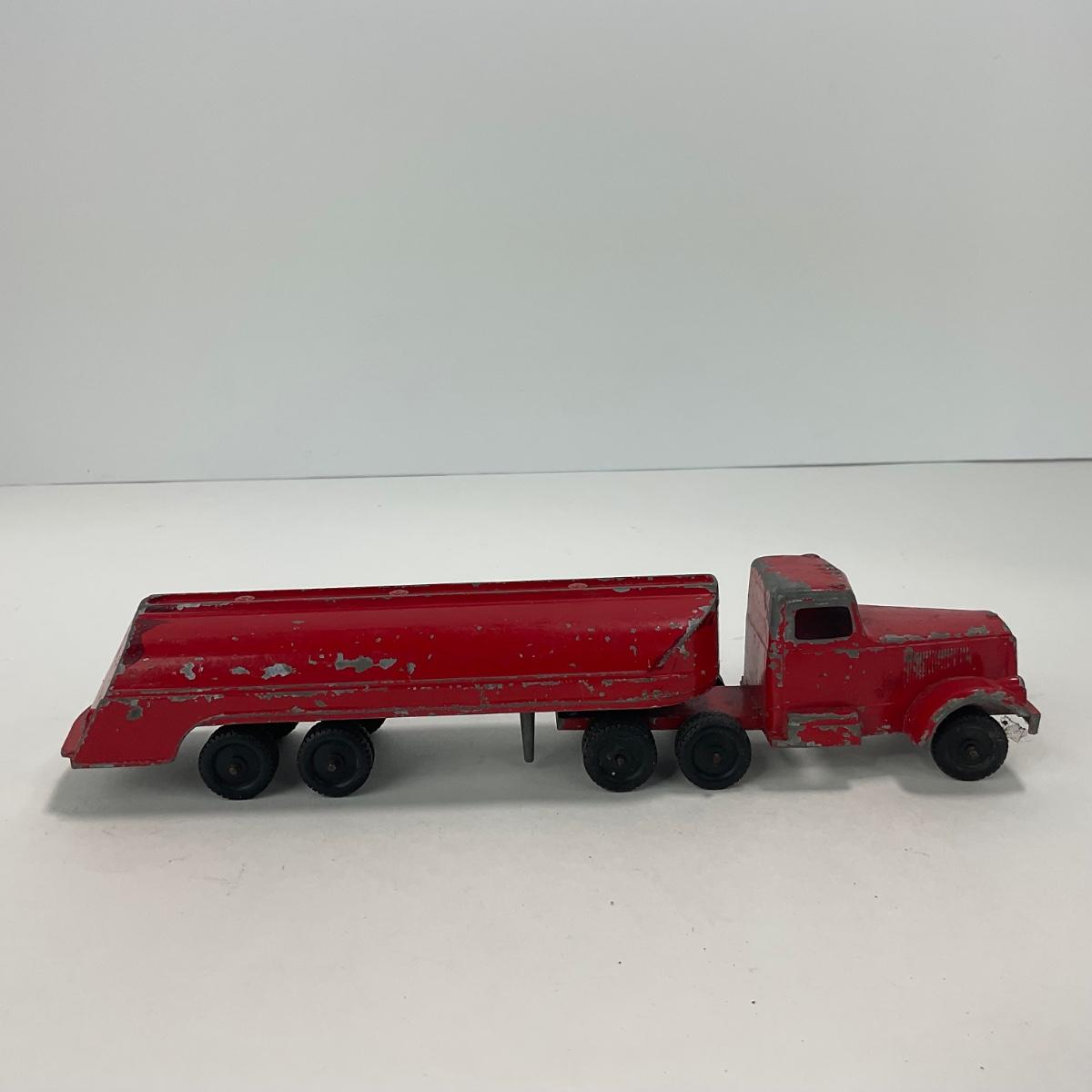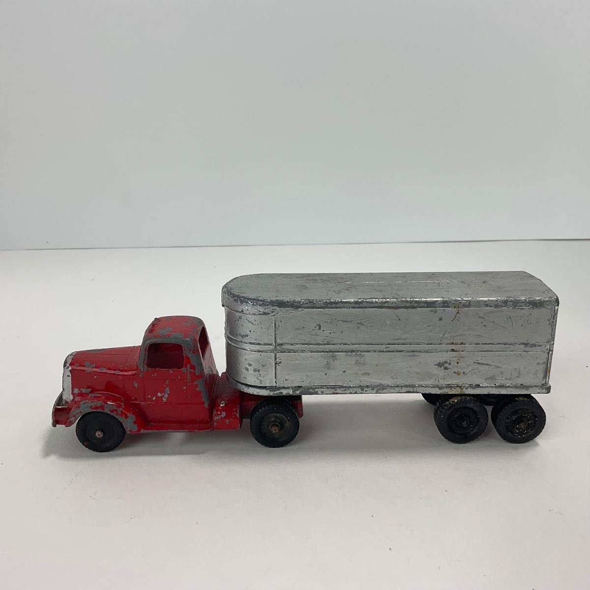 Three vintage 1950’s toy trucks. These pieces have been well loved and have some damage but would make a perfect addition to any collection. Please see photos for details and condition. ::: Shipping is available on this lot. If you require shipping you must let us know at the close of the auction. We will coordinate with you after the item has been won. Shipping fees will include insurance up to or exceeding the value of all items being mailed. If you have any questions regarding this lot please contact the auctioneer either via this website, by direct email or by phone. PICK UP TIMES and other important information can be found in the TERMS and DESCRIPTION of the auction. Please take a look for pertinent information. Thanks!