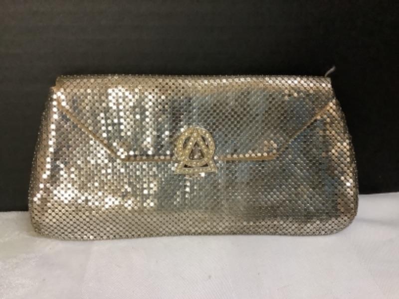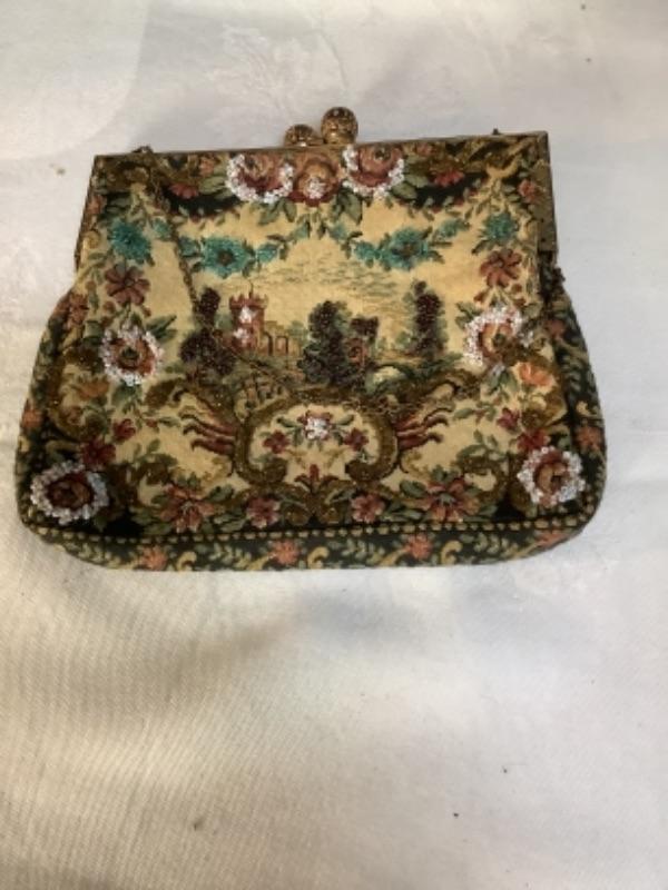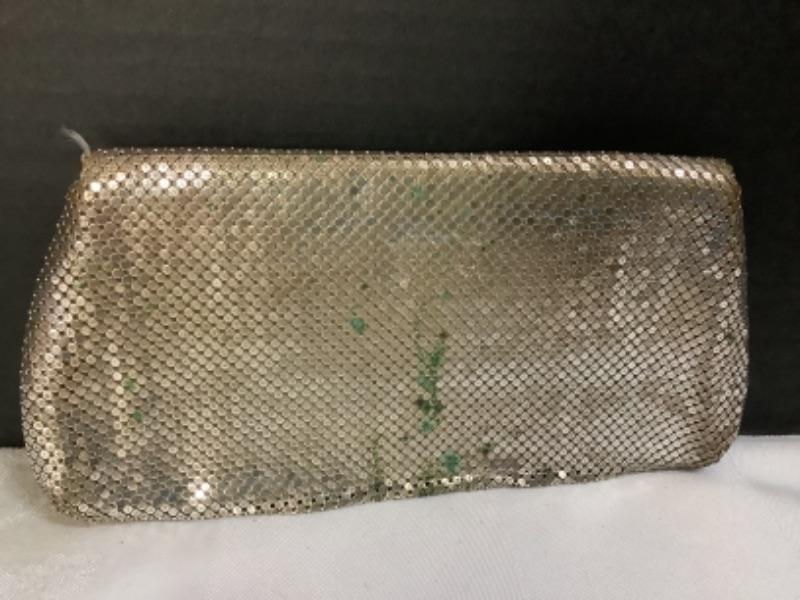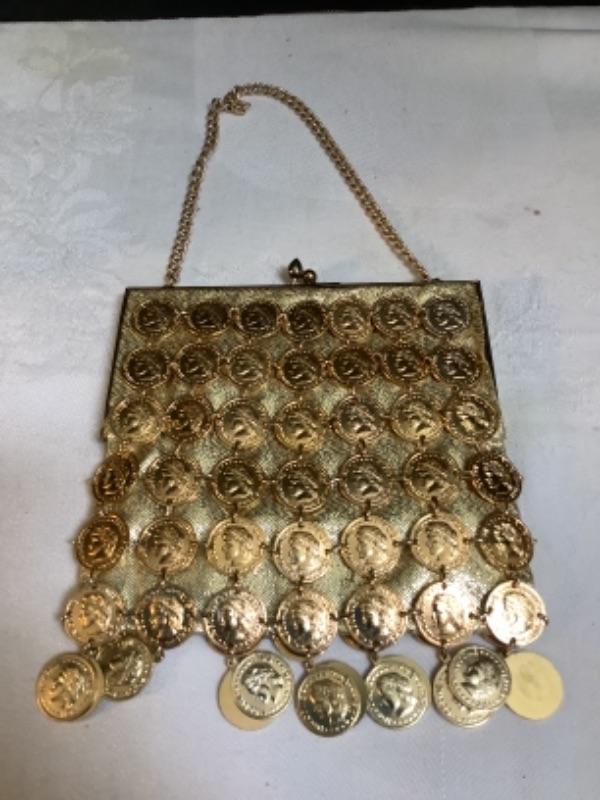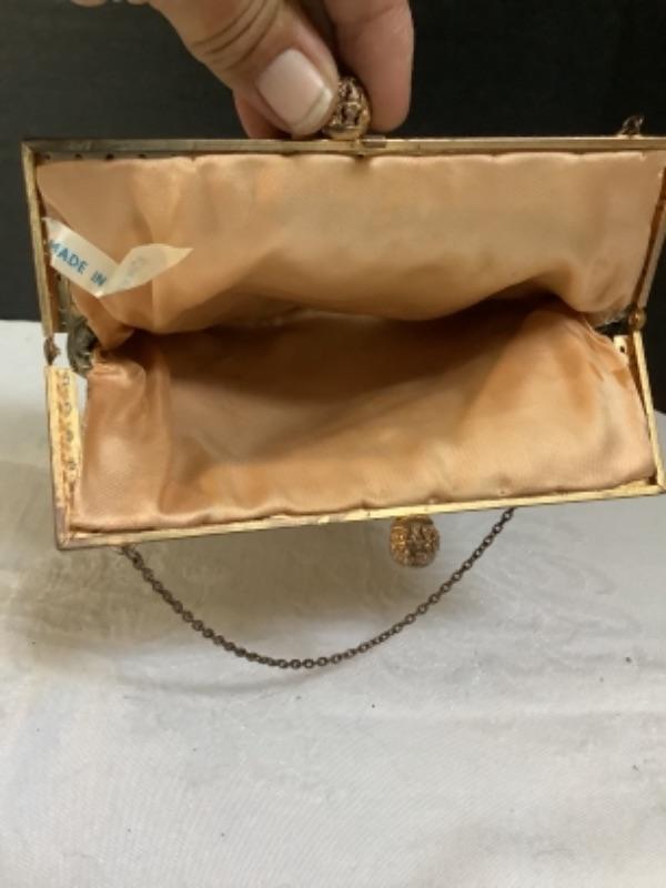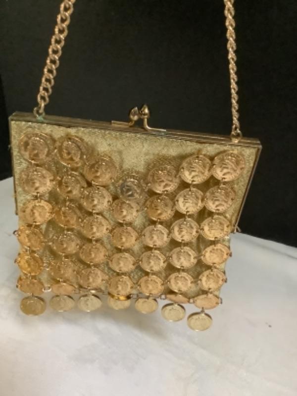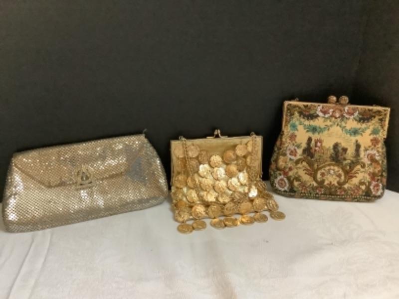Lot of ladies vintage handbags, Whiting & Davis mesh clutch, Magic gold coin handbag and beaded clutch made in France