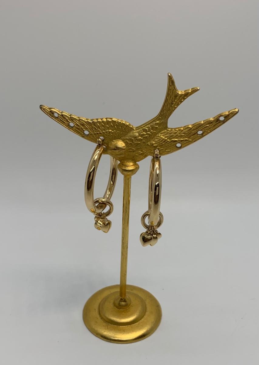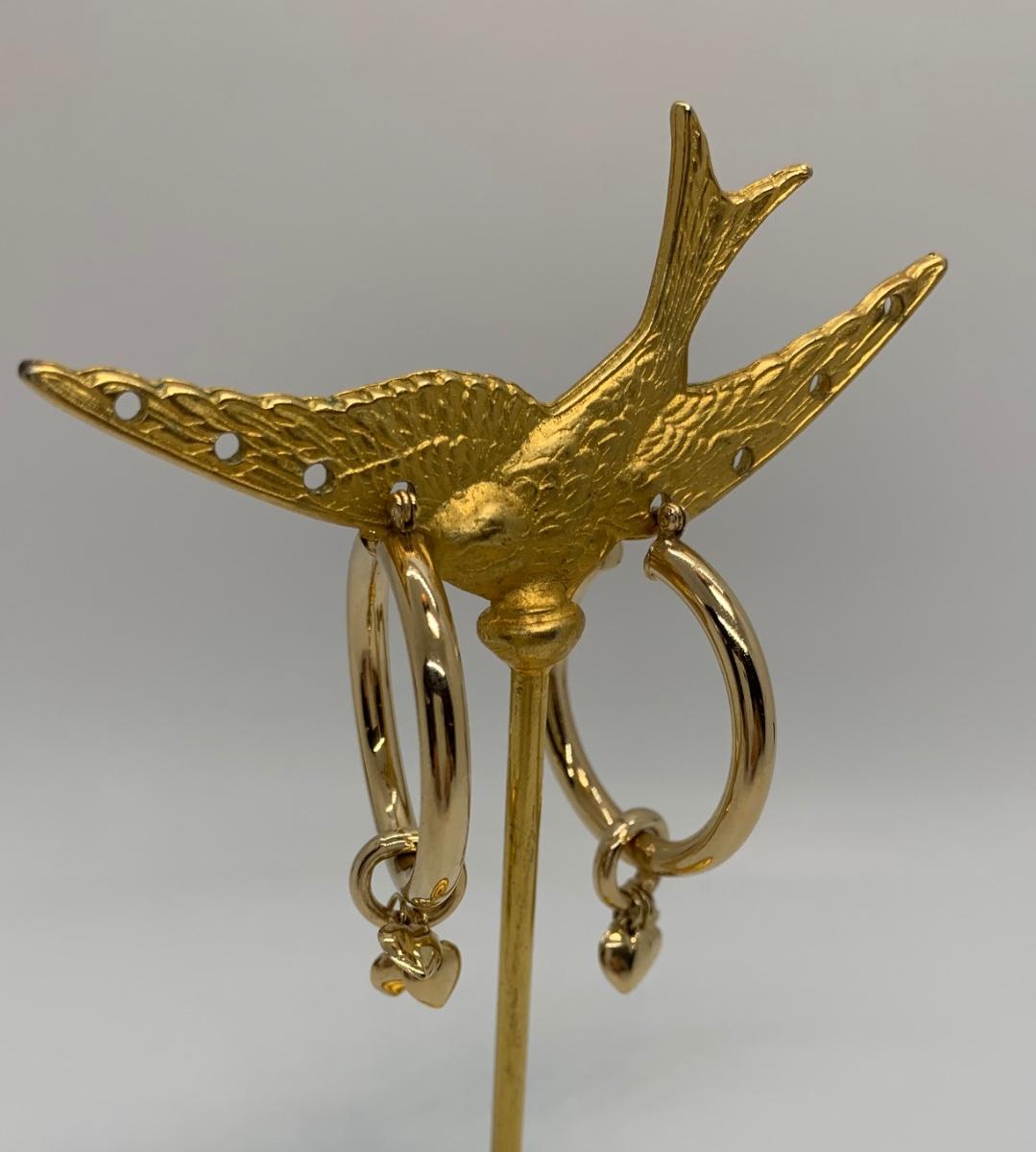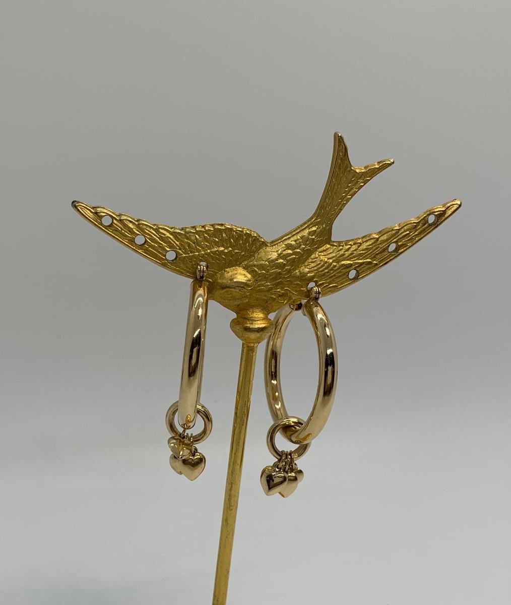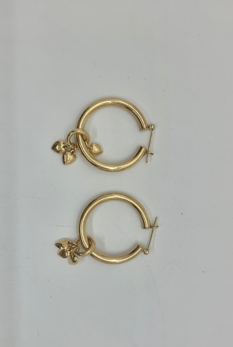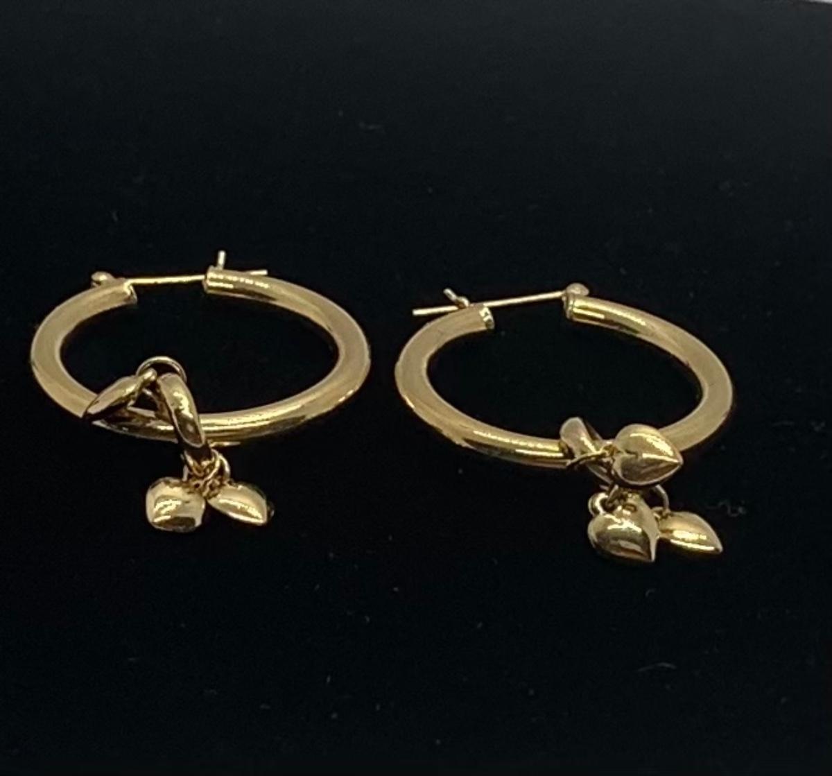 6.6 g 14K Yellow gold Hoop Earrings with removable heart danglers