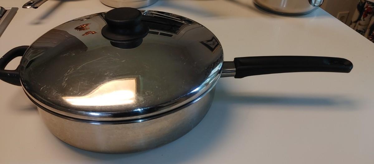 1st) Very large thick stainless steel pan with lid buy Cooks Bazaar