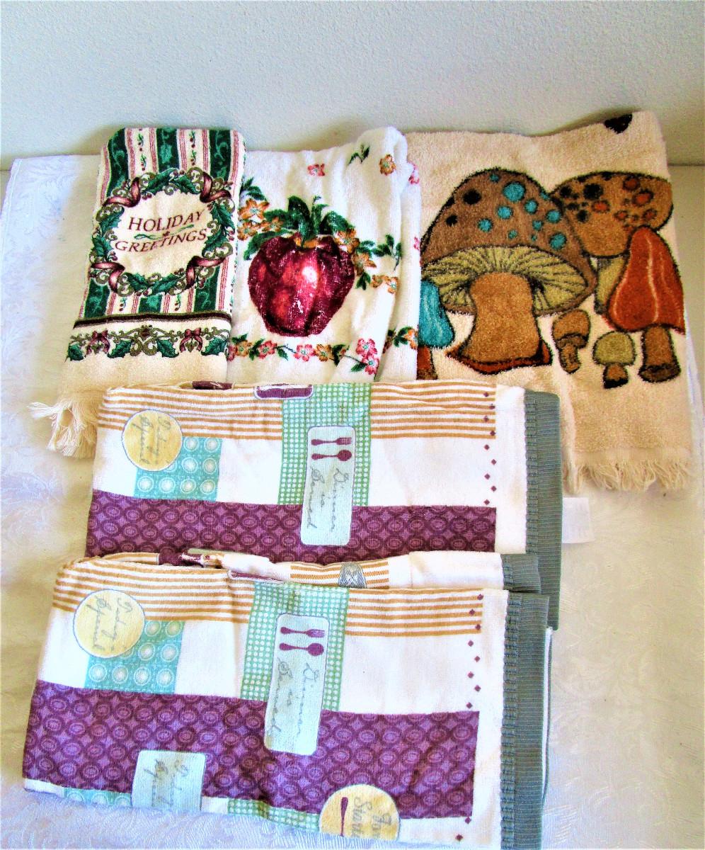 Some new with tags, others are in new condition, one vintage with mushrooms