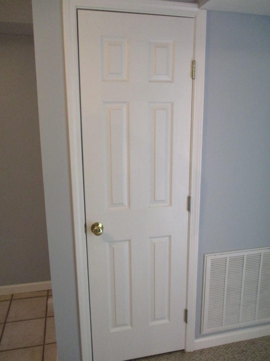 Right hand hinges and the door swings out. You will need to bring the appropriate tools to remove the door and any help you may need. - Down in the basement