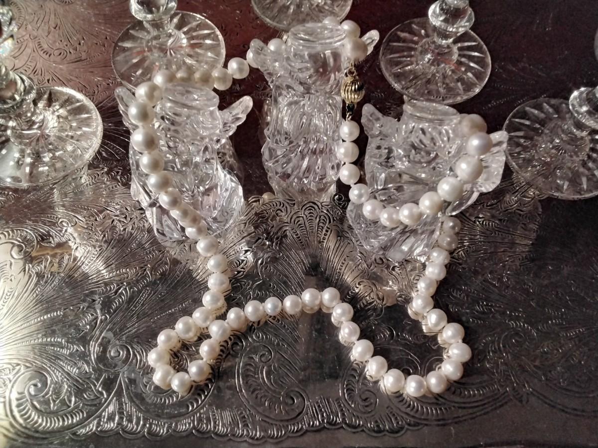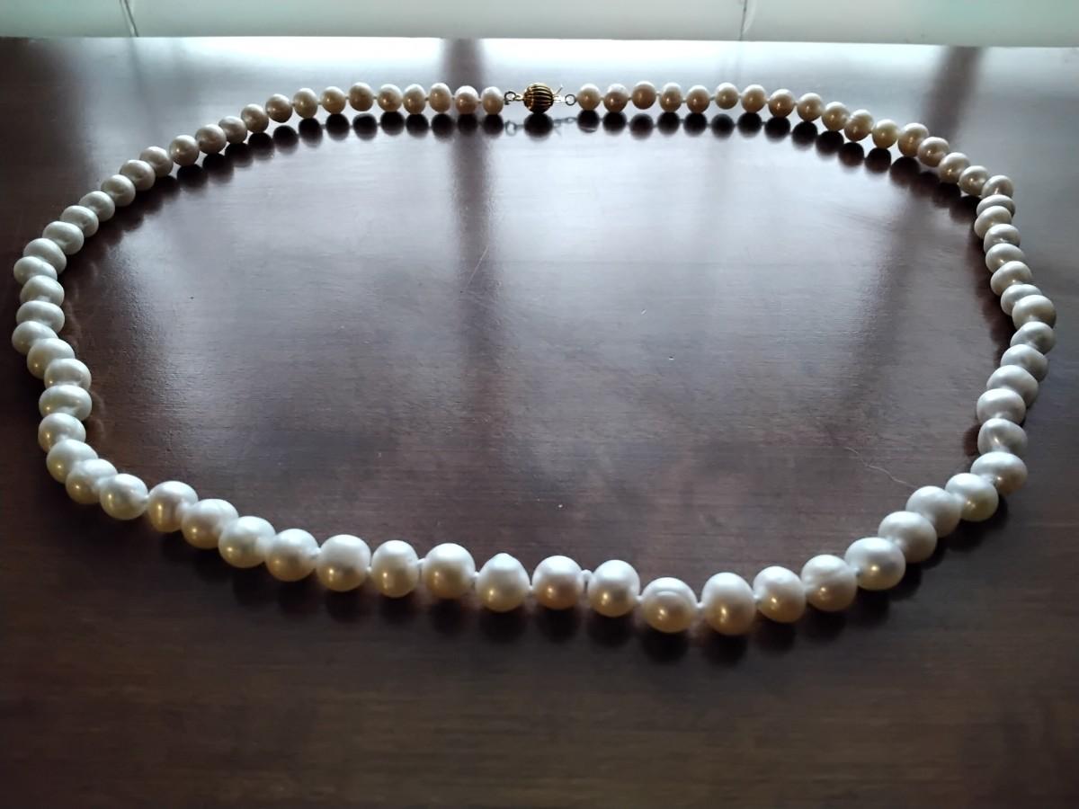 Professionally knotted on double silk strands this is one gorgeous set of pearls the luster on these pearls are outstanding!