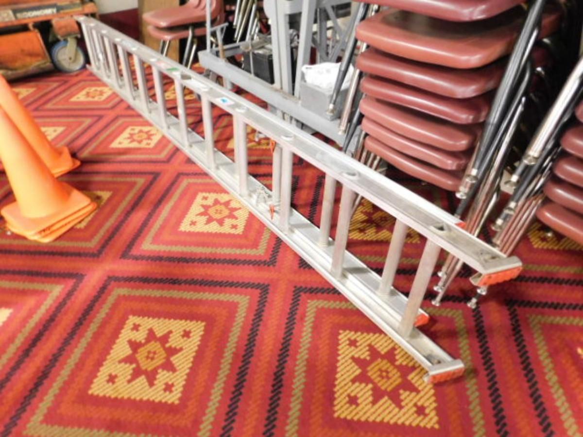 24" Aluminum Contractor's Extension Ladder Expect some wear or scratches to finish. Shipping option available via freight or local mover at Buyer's expense. Buyer must have all shipping scheduled within the stated dates and times of pickup. Recommended local mover is Beaty Bros. Moving 828-201-2982