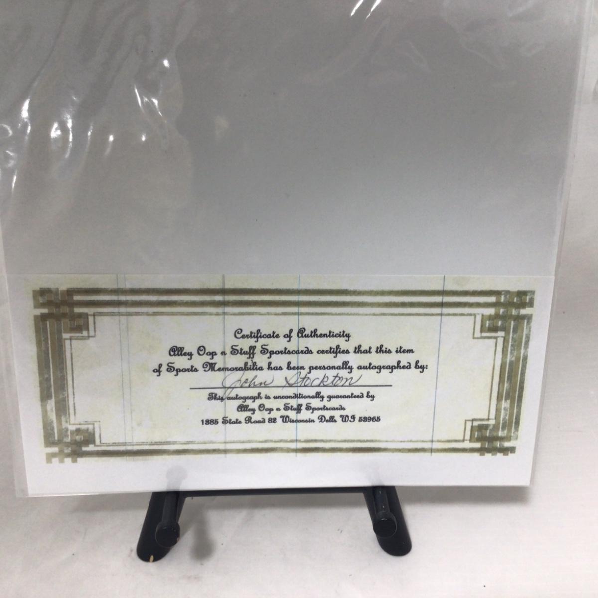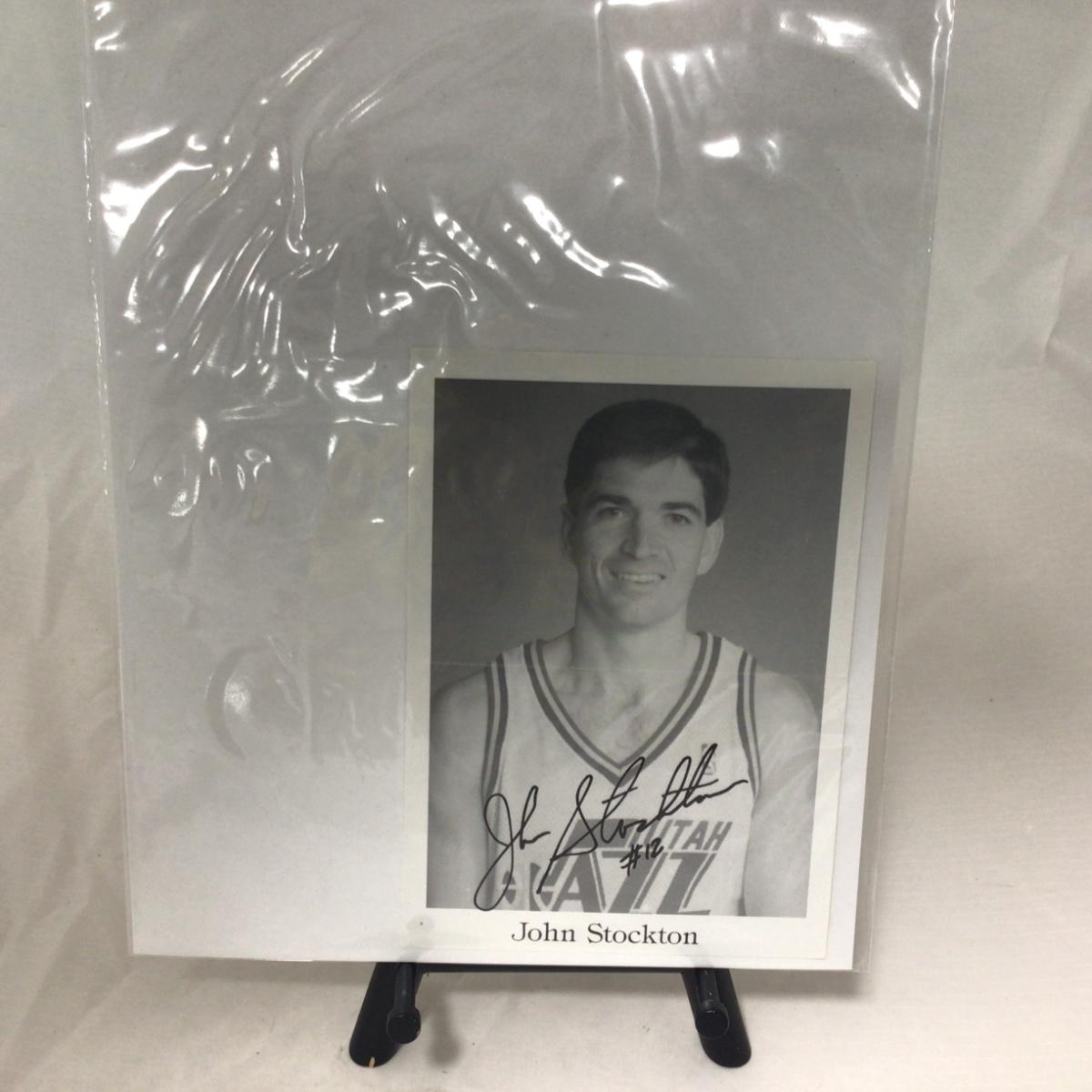 Utah Jazz John Stockton print Signed with Certificate of Authenticity. Five inches by seven inches. Please see photos for details and condition. ::: Shipping is available on this lot. If you require shipping you must let us know at the close of the auction. We will coordinate with you after the item has been won. Shipping fees will include insurance up to or exceeding the value of all items being mailed. If you have any questions regarding this lot please contact the auctioneer either via this website, by direct email or by phone. PICK UP TIMES and other important information can be found in the TERMS and DESCRIPTION of the auction. Please take a look for pertinent information. Thanks!