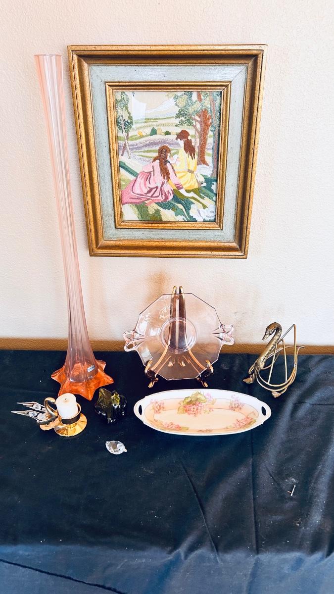 24” BOHEMIAN BUD VASE, AND OTHER VINTAGE ITEMS