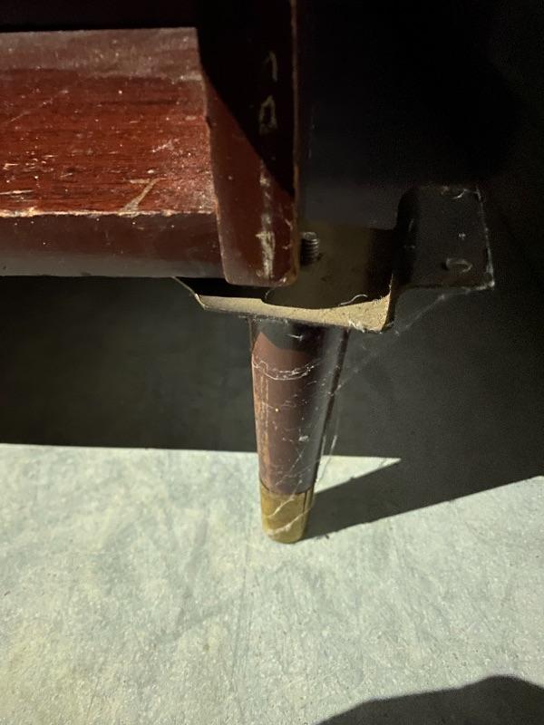 Bookshelf has surprise feet to give it a Mid Century vibe. Legs are a bit wobbly and will need reinforcing. 30”w x 10”d x 40”h