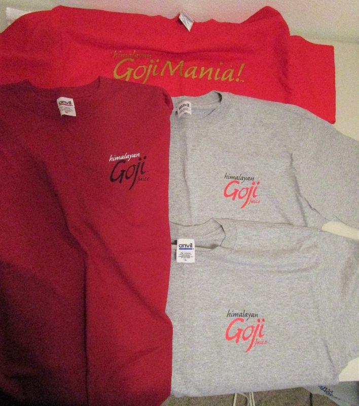 1- Medium Burgundy L/S; 3- Large- 1 Red, 2 Gray, S/S; Goji logo on all