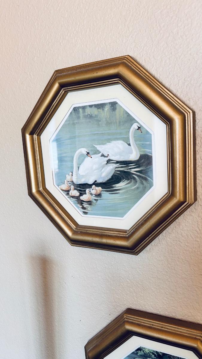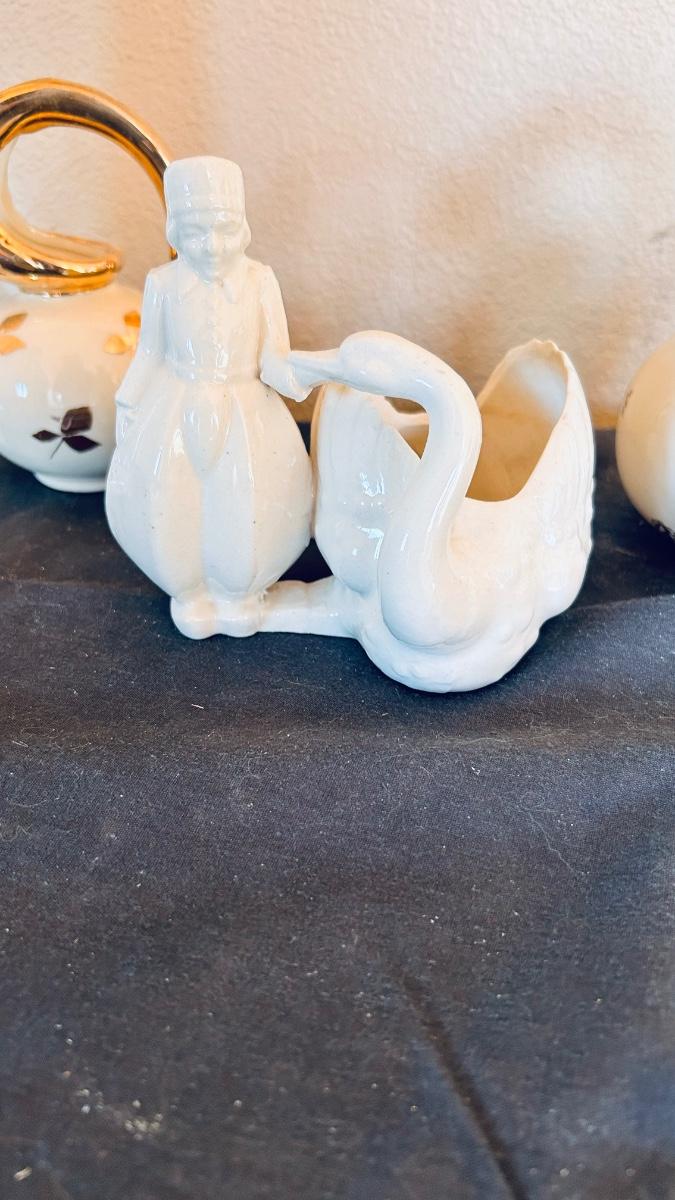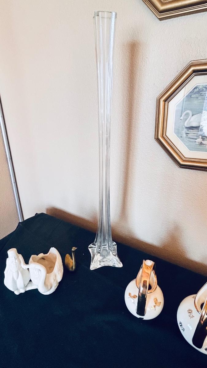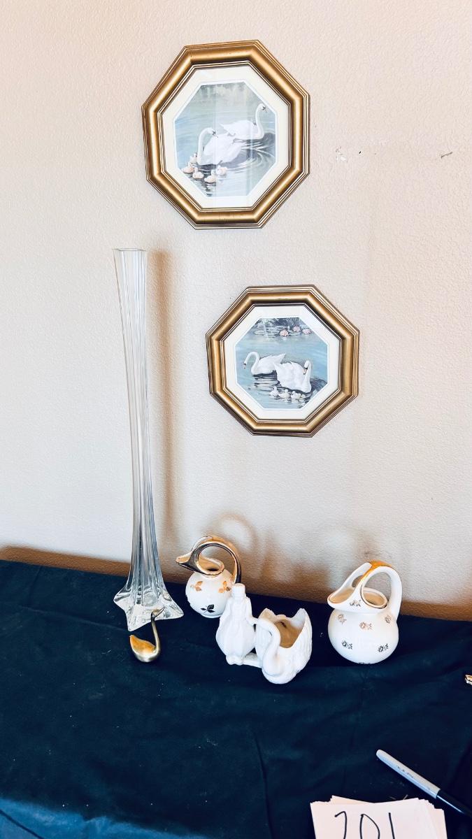 24” BUD VASE, SWAN PICTURES IN VINTAGE FIGURINES