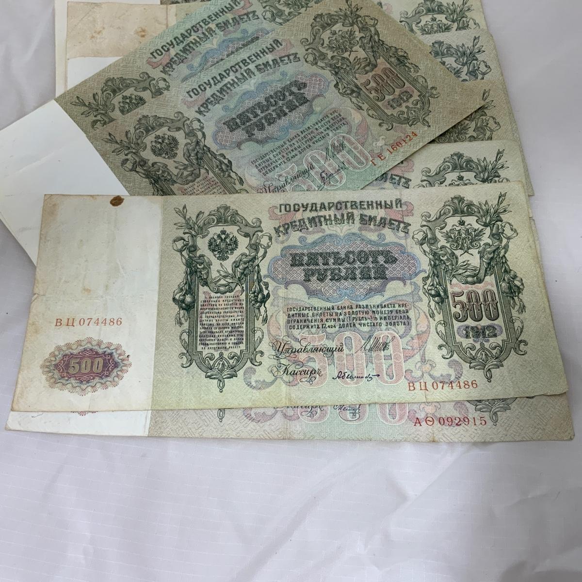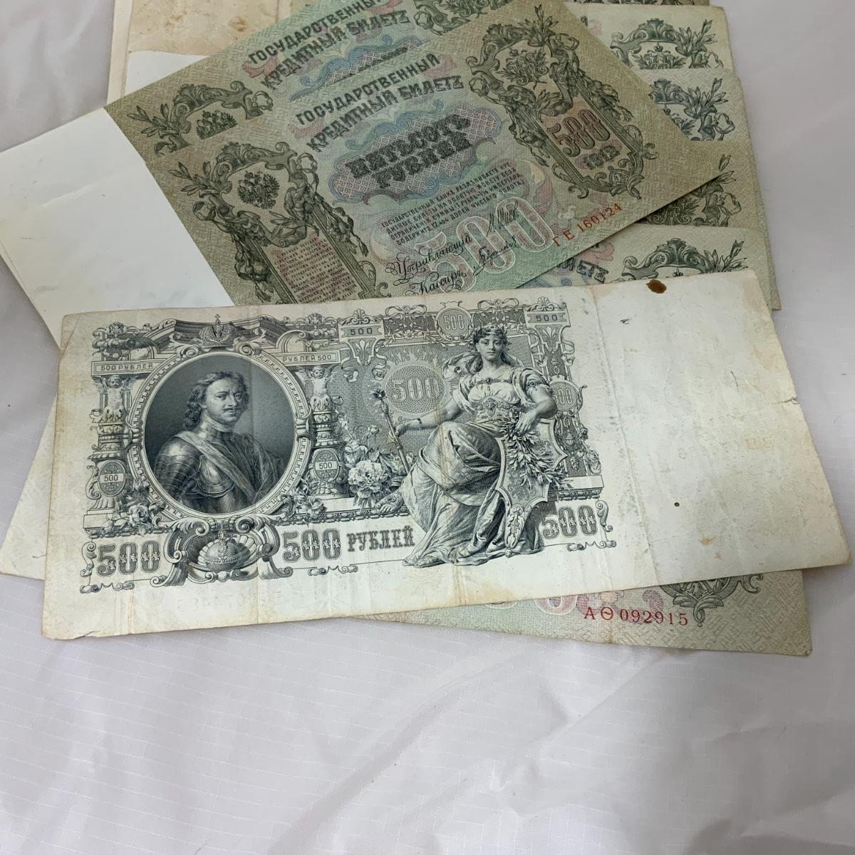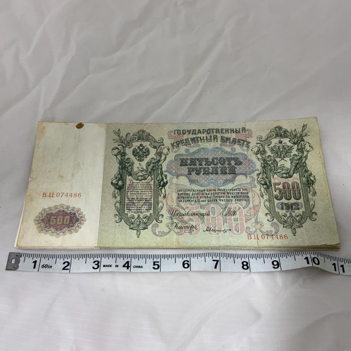 From the Estate of Peter Radovanovich: Nine State Credit Notes dated 1912, each 500 Rubles. All in various states of condition and circulation. Comes with Copy of Certificate of Authenticity. Please see photos for details and condition. ::: Shipping is available on this lot. If you require shipping you must let us know at the close of the auction. We will coordinate with you after the item has been won. Shipping fees will include insurance up to or exceeding the value of all items being mailed. If you have any questions regarding this lot please contact the auctioneer either via this website, by direct email or by phone. PICK UP TIMES and other important information can be found in the TERMS and DESCRIPTION of the auction. Please take a look for pertinent information. Thanks!
