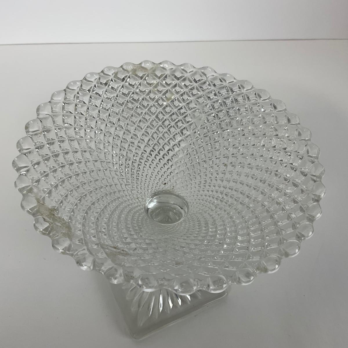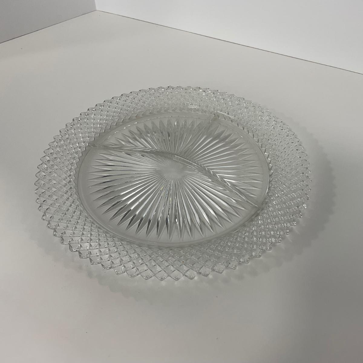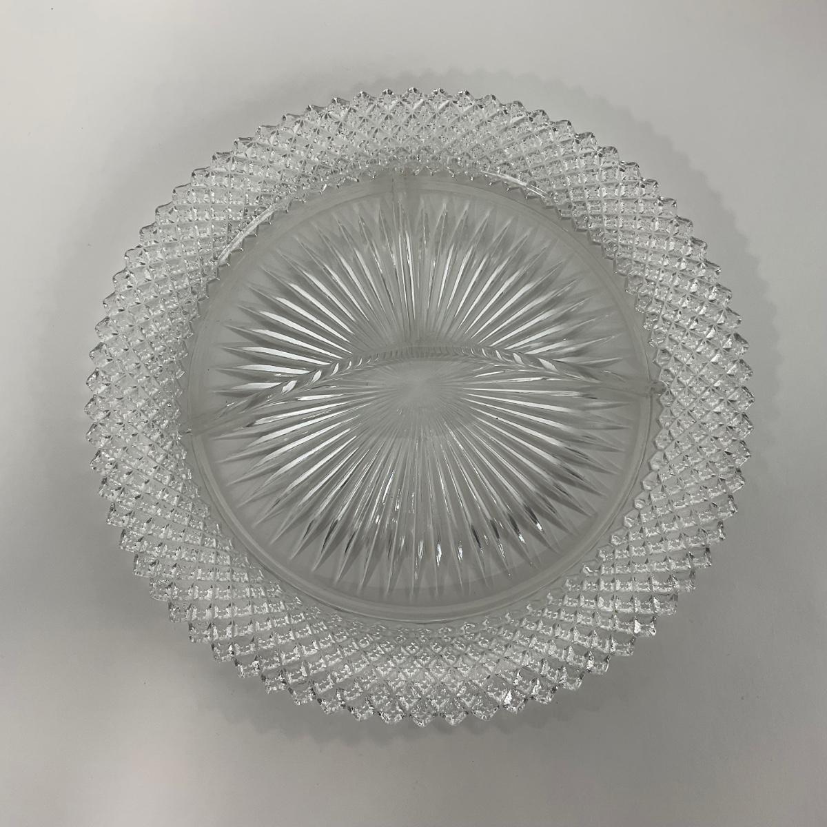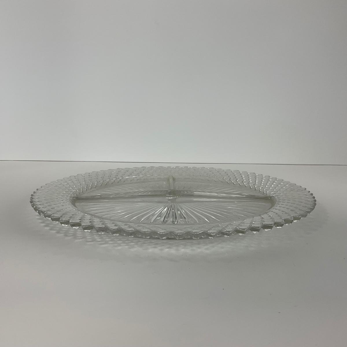 Three Miss America Hocking Glass Co. (1933-1937) pieces including one divided tray, one plate, and one compote. Please see photos for details and condition. ::: Shipping is available on this lot. If you require shipping you must let us know at the close of the auction. We will coordinate with you after the item has been won. Shipping fees will include insurance up to or exceeding the value of all items being mailed. If you have any questions regarding this lot please contact the auctioneer either via this website, by direct email or by phone. PICK UP TIMES and other important information can be found in the TERMS and DESCRIPTION of the auction. Please take a look for pertinent information. Thanks!