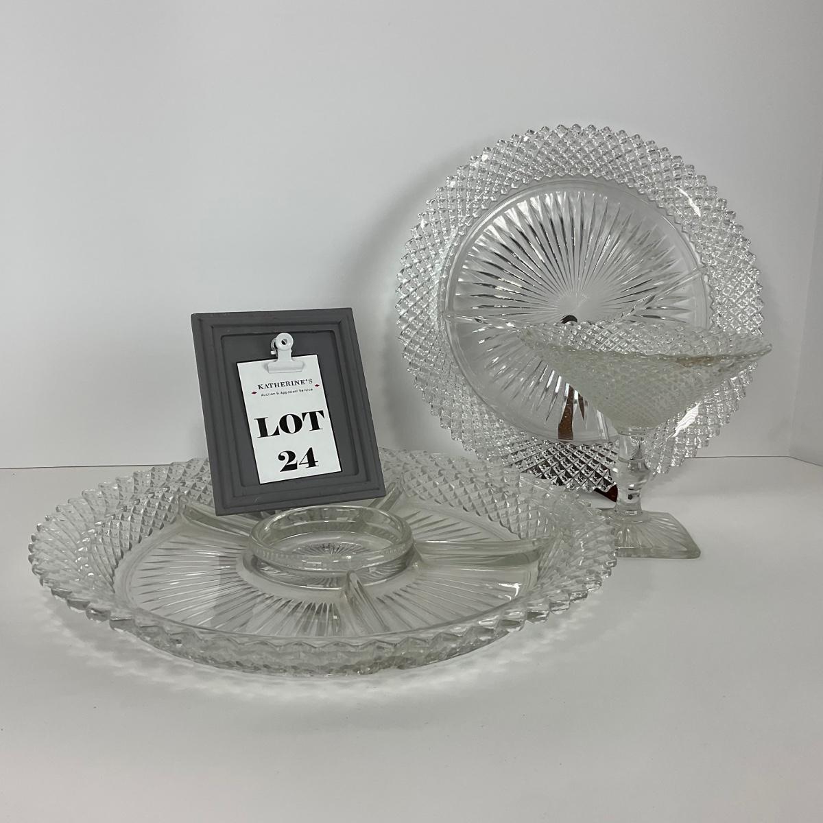 -24- GLASSWARE | Miss America Hocking Glass Co. | Tray, Plate, & Compote