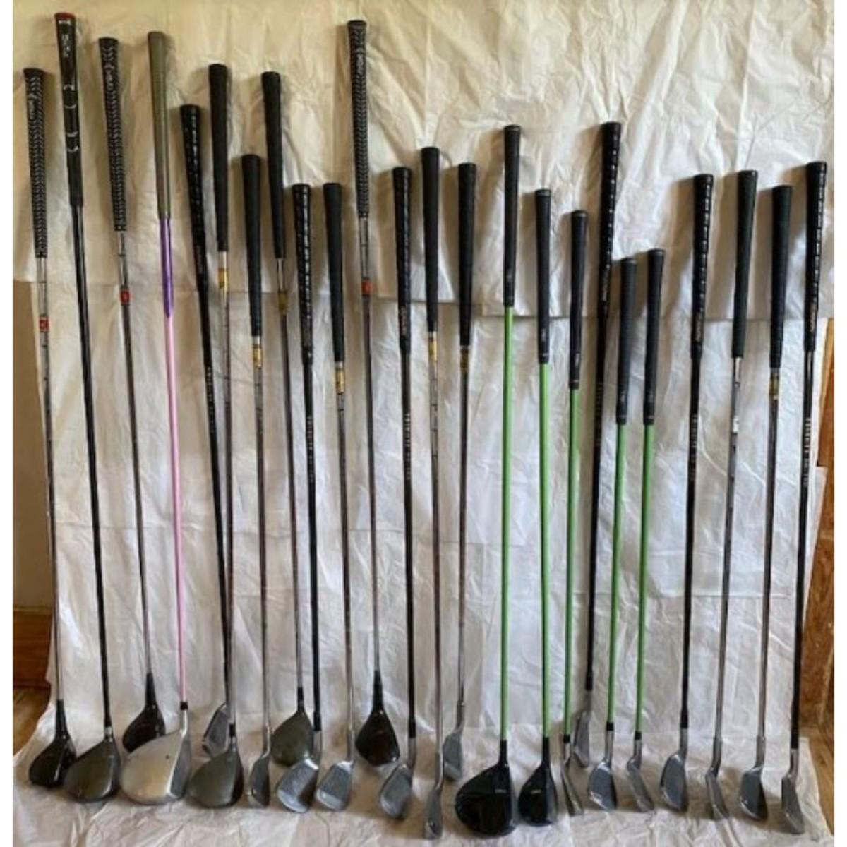 This is a lot of twenty-four golf clubs. They do have some wear, so they are priced accordingly. You get the following clubs: