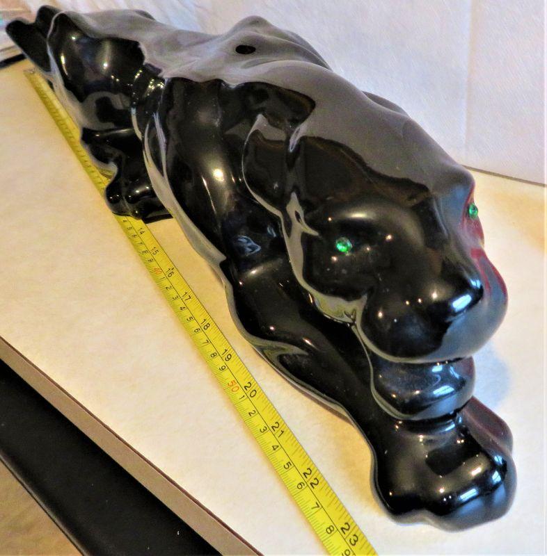 MCM 24" Large BLACK Crawling Panther Ceramic Figurine Art Deco, Green EYES.