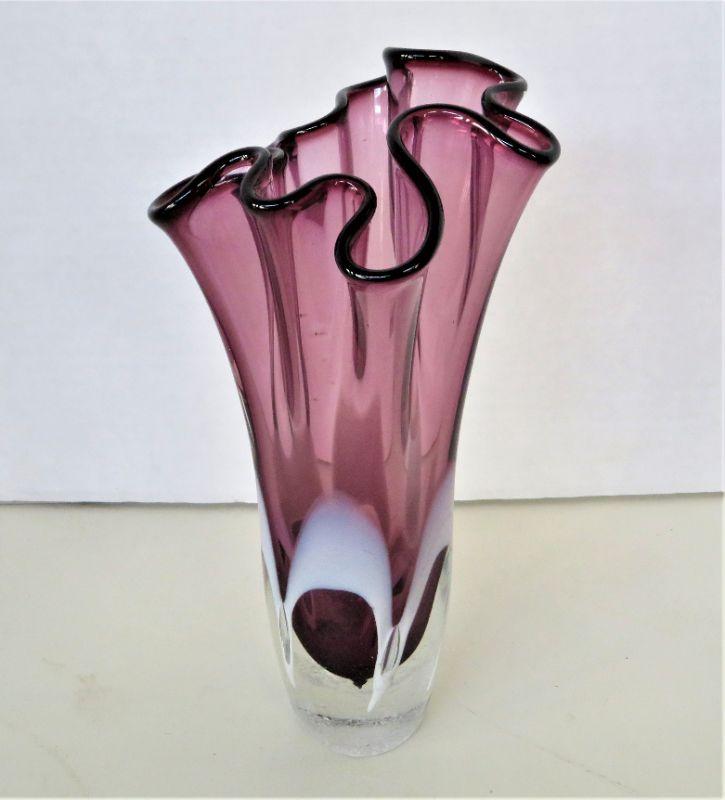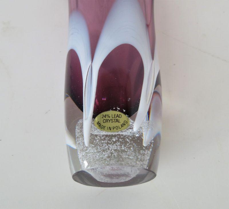 24% Lead Crystal Glass Cranberry & White Fluted Vase Made in Poland 8.5" h