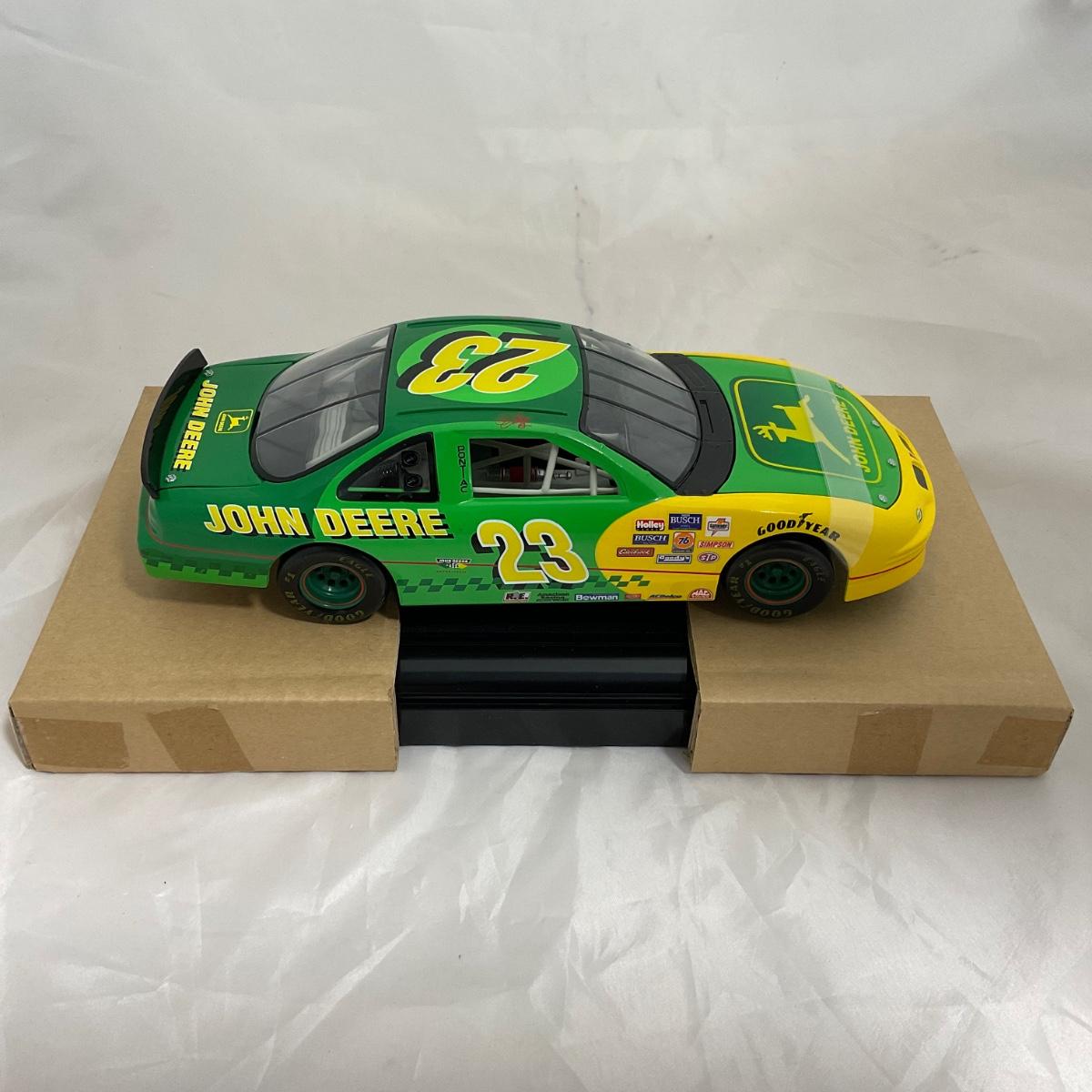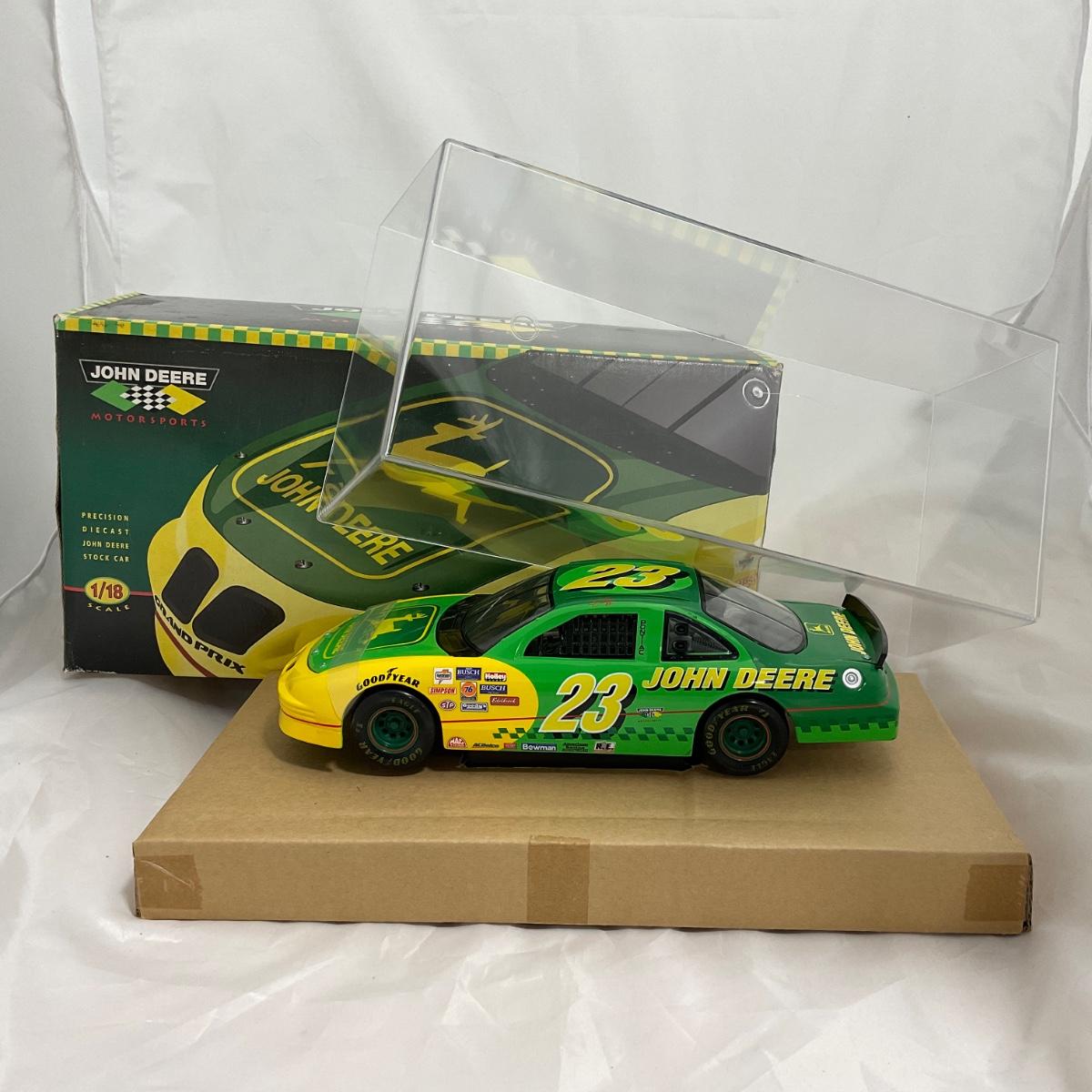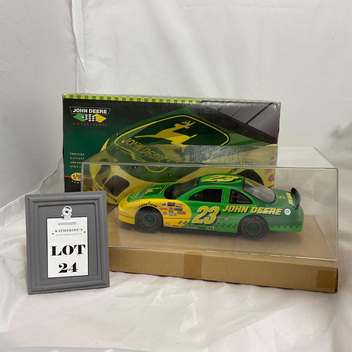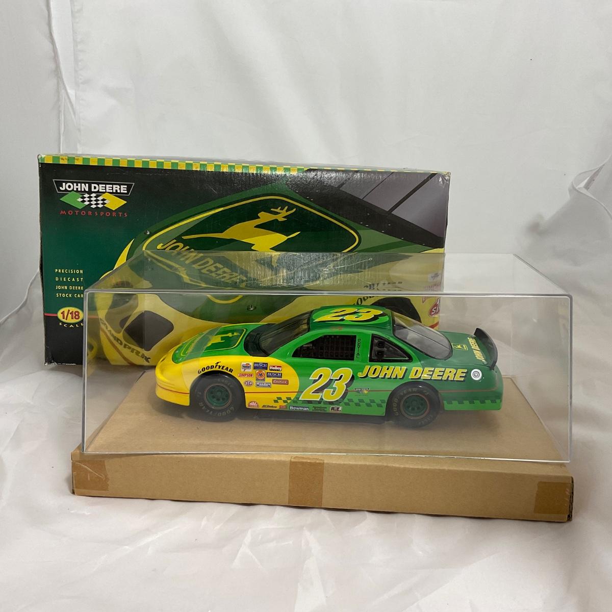 One NASCAR die cast 1:18 scale 1996 Precision Die Cast John Deere Stock Car figure with base and Acrylic cover. Chad Little. Does not come with a Certificate of Authenticity. Please see photos for details and condition. ::: Shipping is available on this lot. If you require shipping you must let us know at the close of the auction. We will coordinate with you after the item has been won. Shipping fees will include insurance up to or exceeding the value of all items being mailed. If you have any questions regarding this lot please contact the auctioneer either via this website, by direct email or by phone. PICK UP TIMES and other important information can be found in the TERMS and DESCRIPTION of the auction. Please take a look for pertinent information. Thanks!