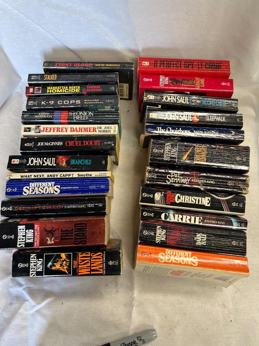 Lot of 24 paperback horror, serial killer, thriller books, Stephen King, John Saul, Dahmer etc.