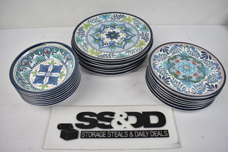 24 pc Dinnerware Blue/Green/Orange, Melanine. Bowls, Small & Large Plates