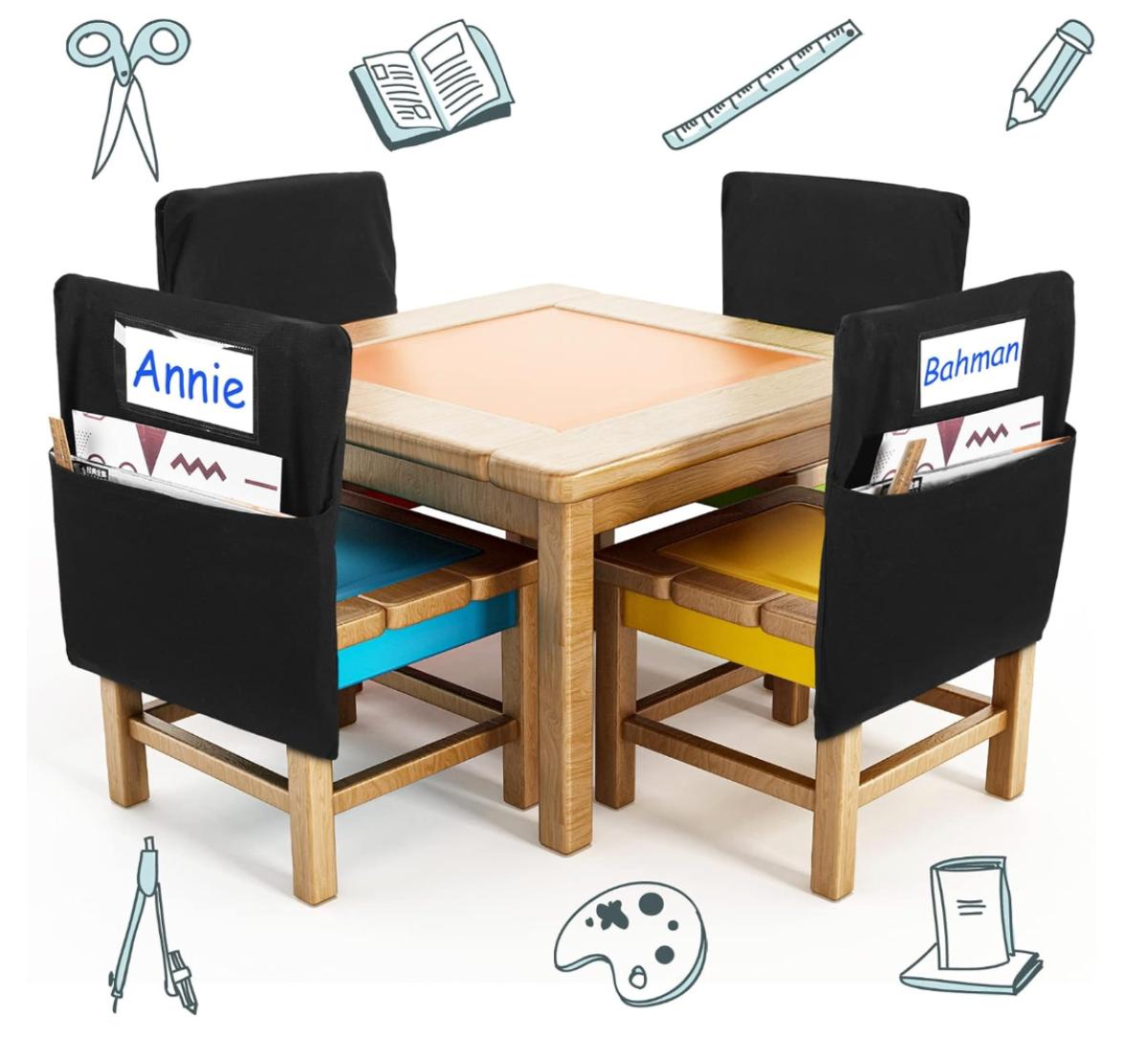 24 Pcs Small Chair Storage Pocket 14 Inch School Chair Bag Chairback Buddy Pocket Student Seat Pocket Chart Classroom Organizer with Name Tag for Primary School Chair up to 14'' Wide(Black)