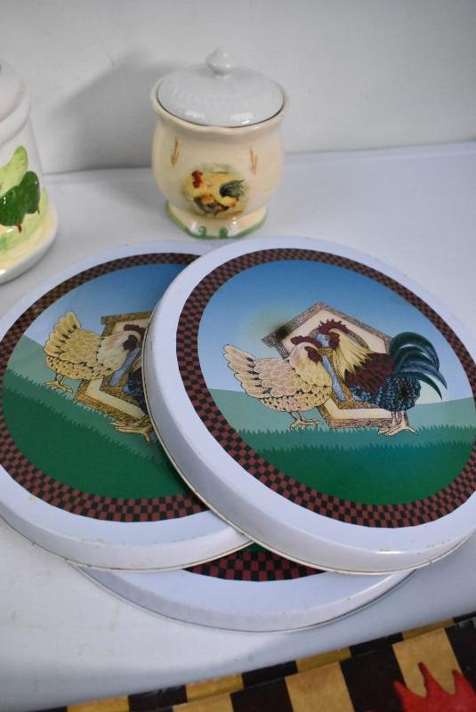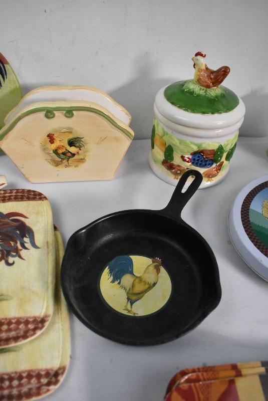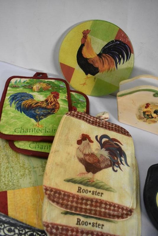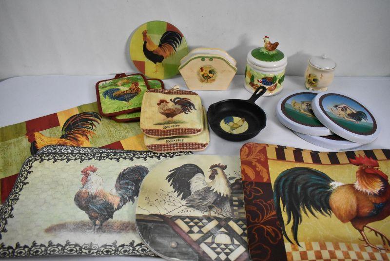 24 Piece Kitchen Rooster & Chicken Items: Placemats, Hot pads, Pan, etc