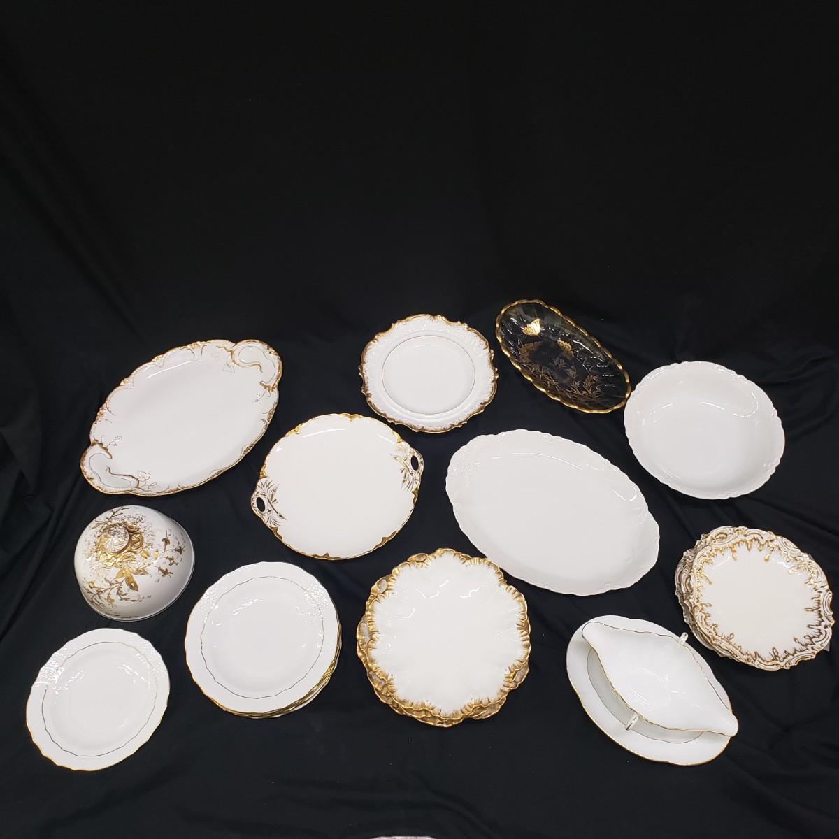 24 Pieces of Limoges, Hutschenreuther, Herend Hungary Gold & White China (1050-KD)