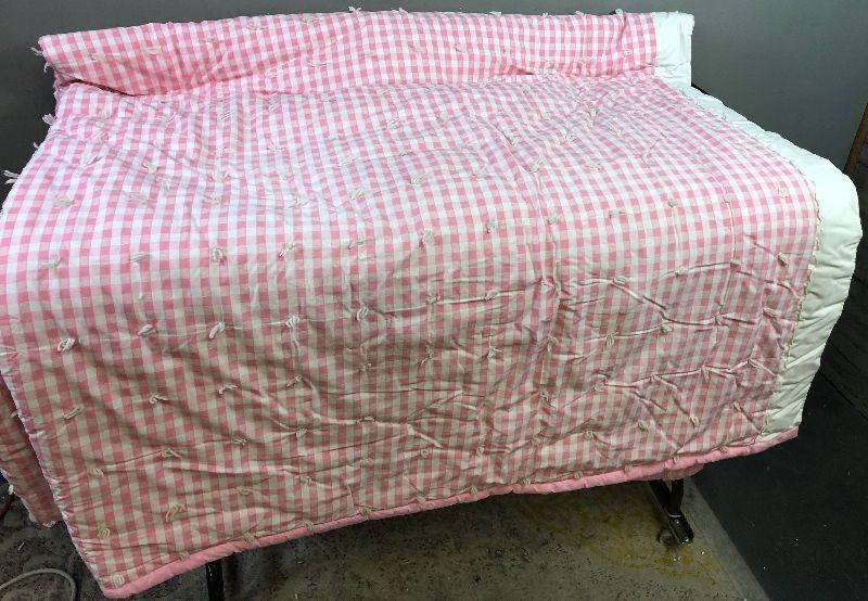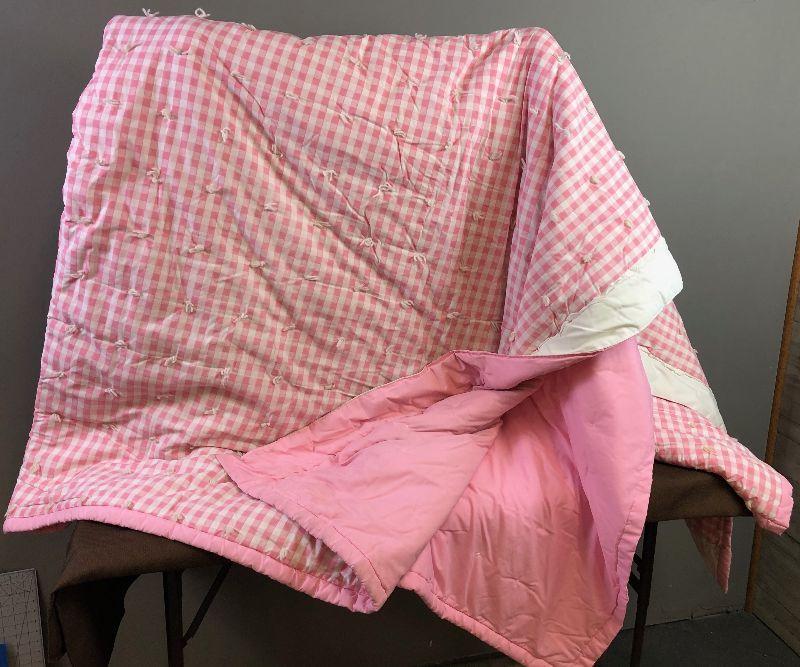 Tie Quilt 100 x 102" GOOD Condition, probably needs to be cleaned. Scalloped edge.