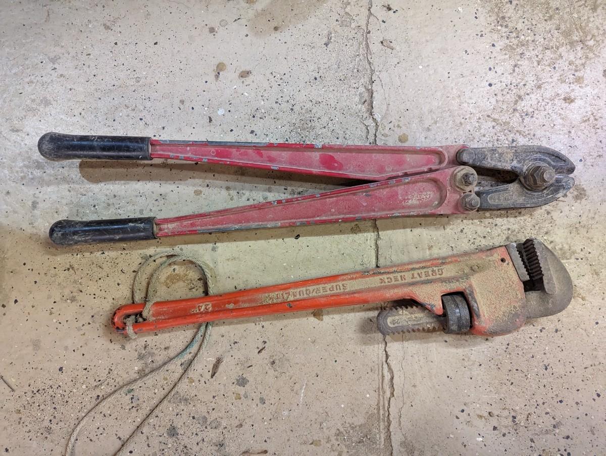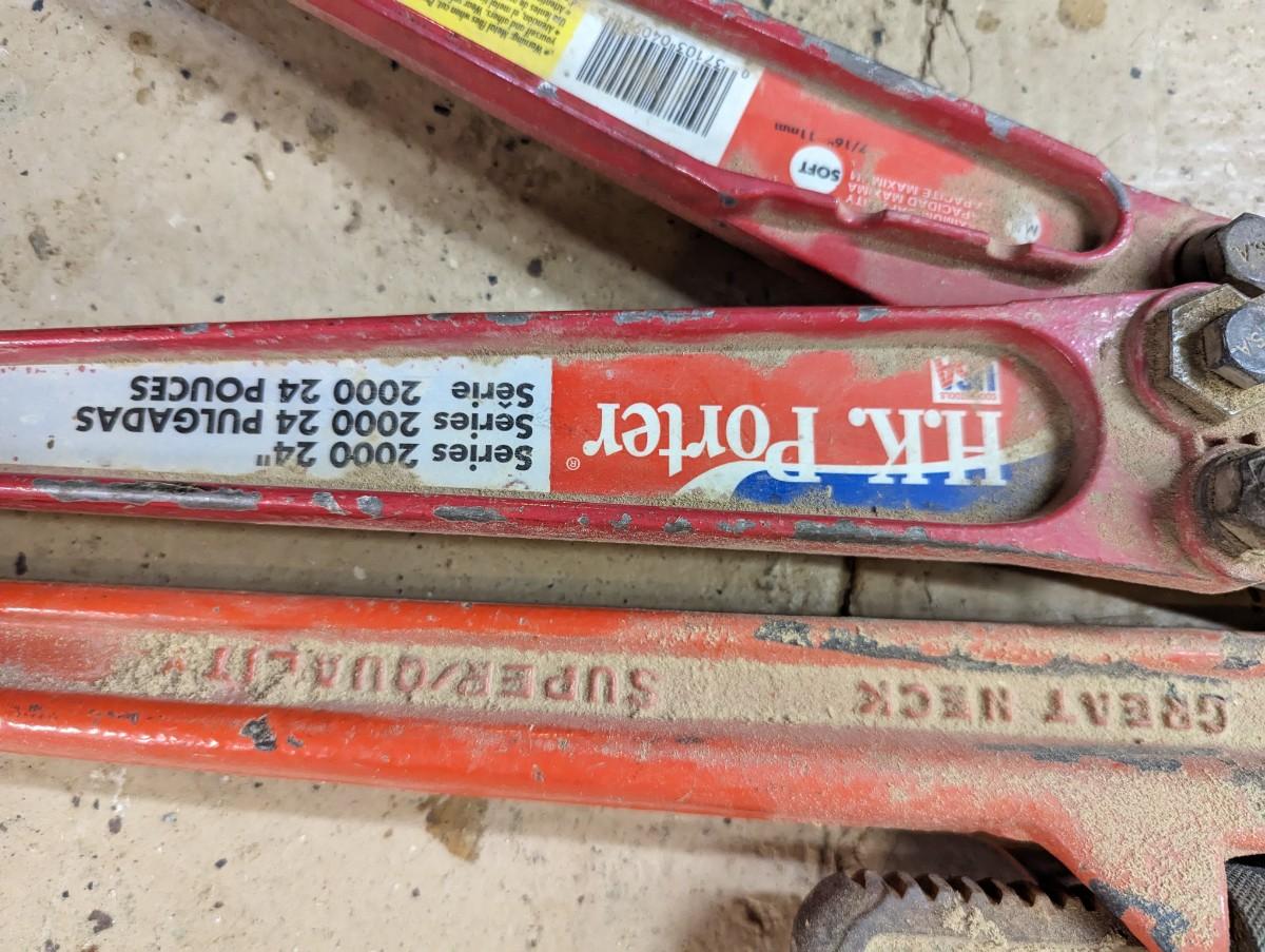 24" Pipe Wrench & 24" H.K. Porter Bolt Cutters