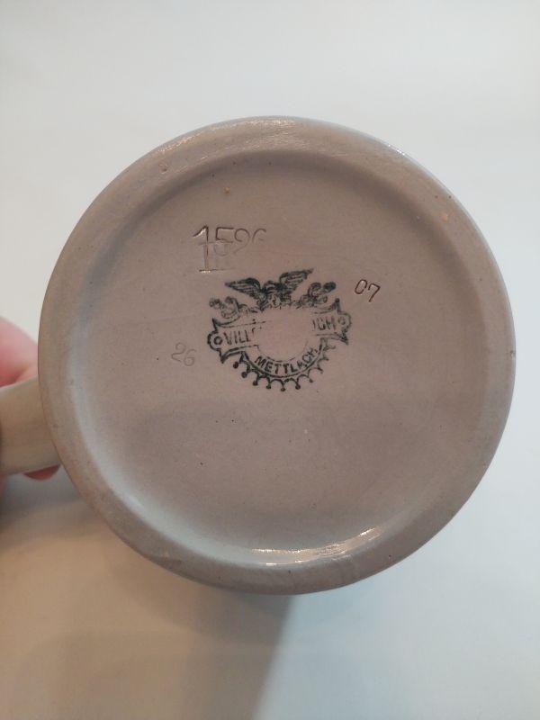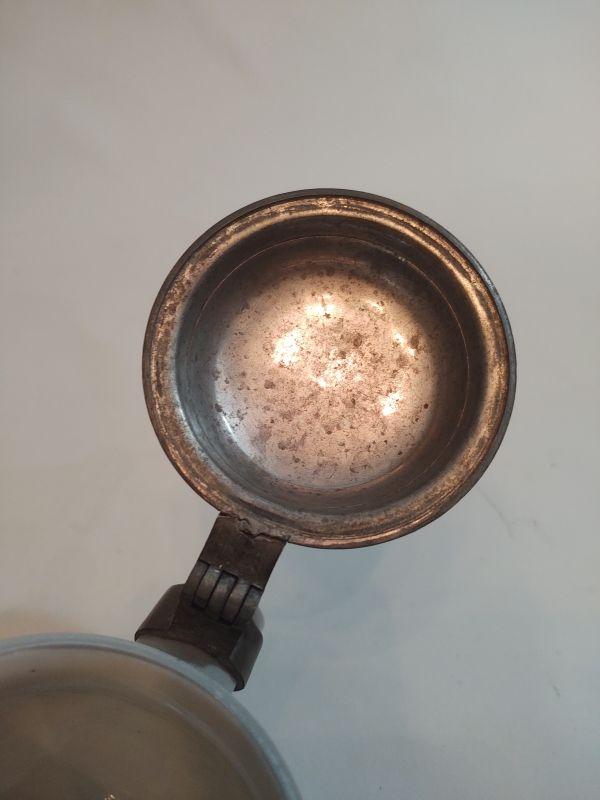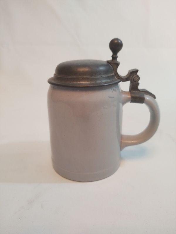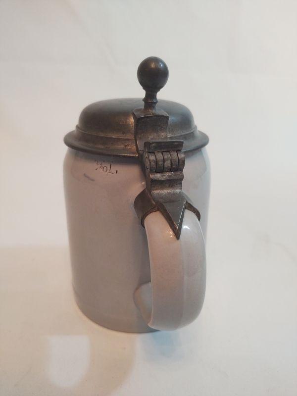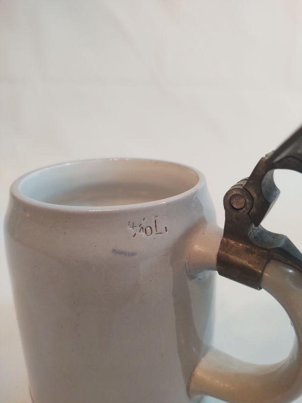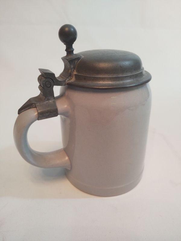 Pottery style stein has a plain pewter lid attached. See makers marks on the side near the lid and n the bottom of the stein.