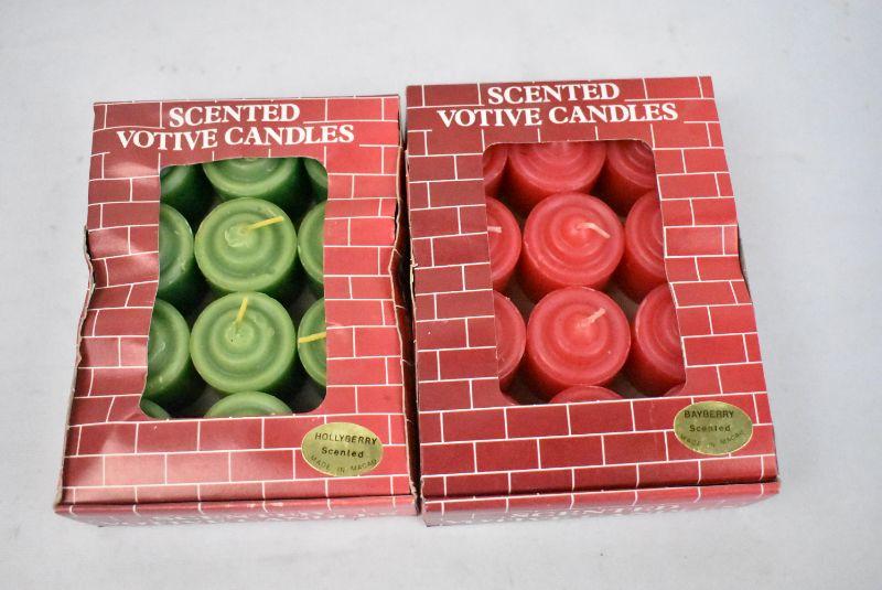 24 Scented Votive Candles: 12 Green "Hollyberry" and 12 Red "Bayberry"