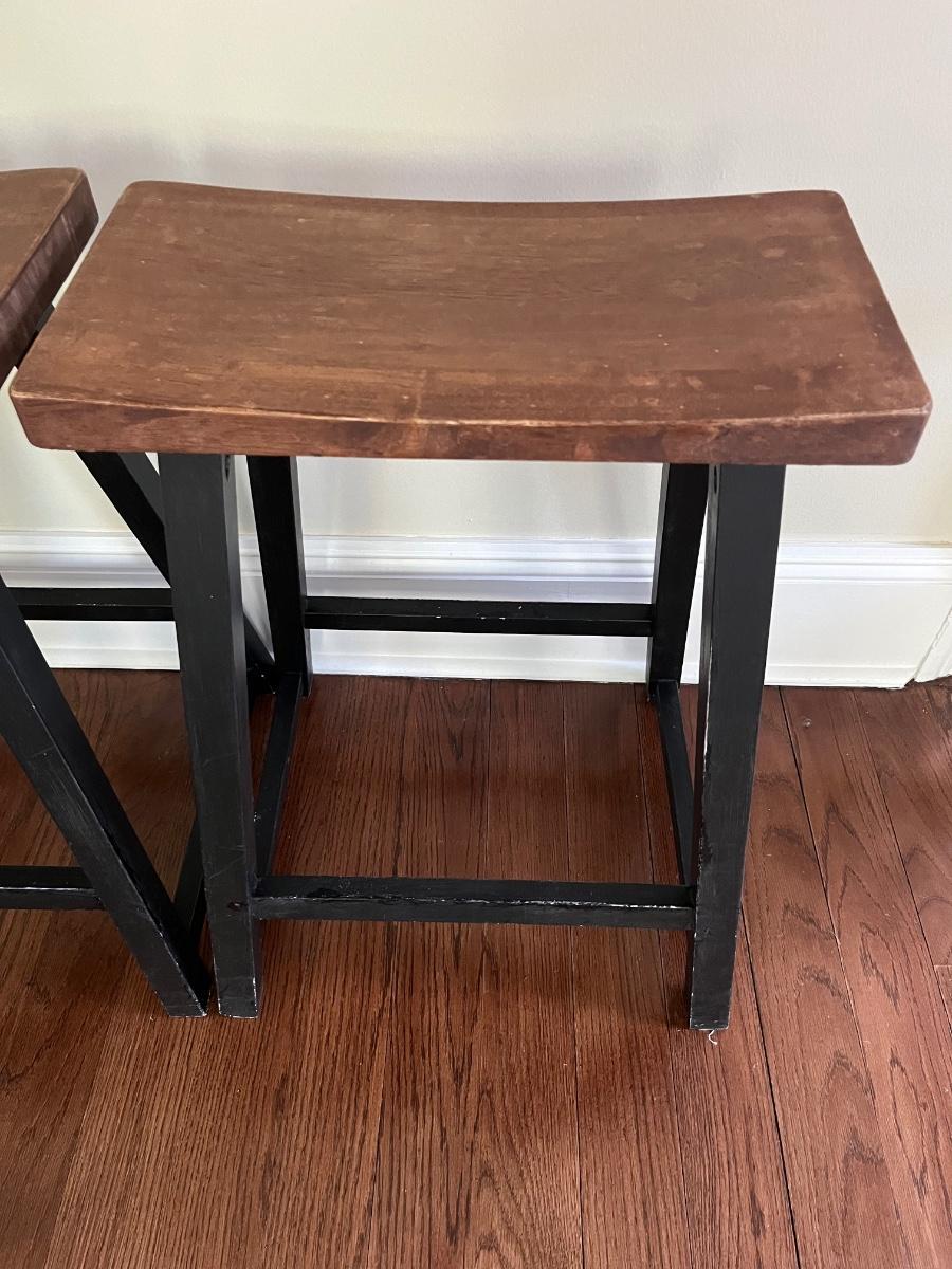 24” H x 17.5” W x 9” D ~ Stools are used and could use some new paint