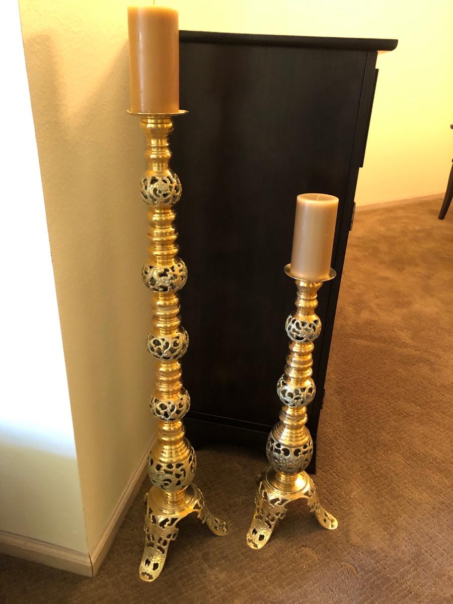 24- Two Tall Brass Candle Holders
