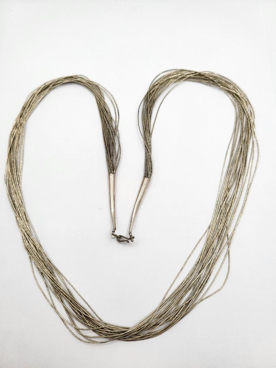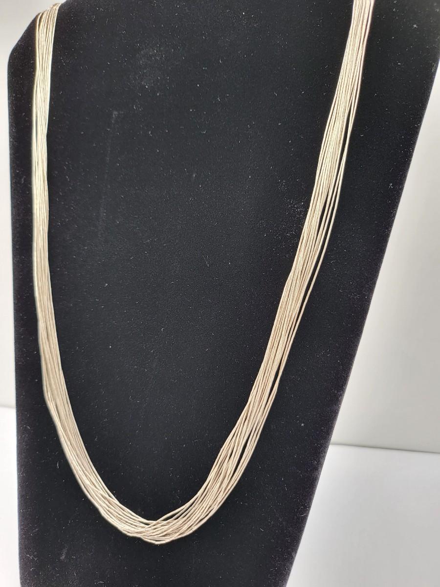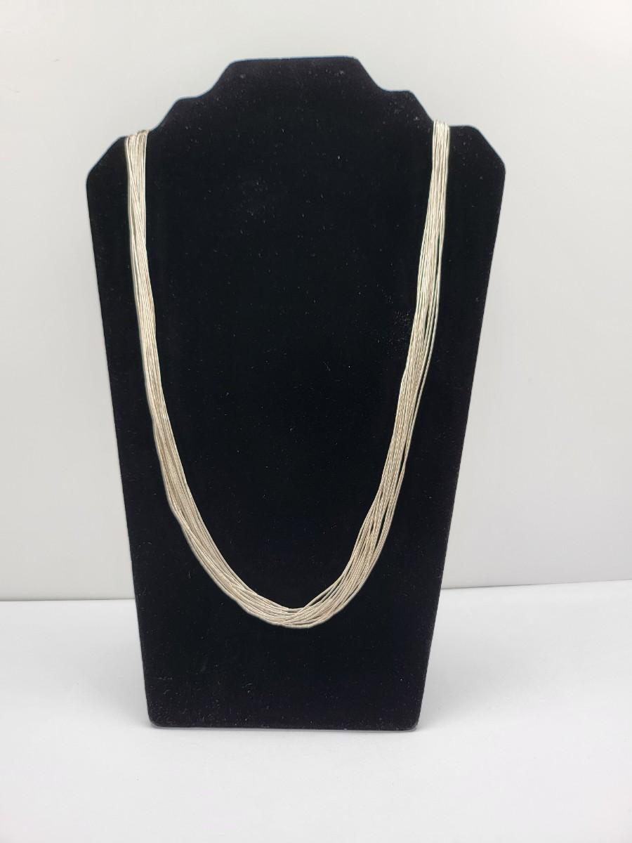 Twenty, sterling liquid silver strands necklace. Measures 28" long. Weighs 30.3 grams.