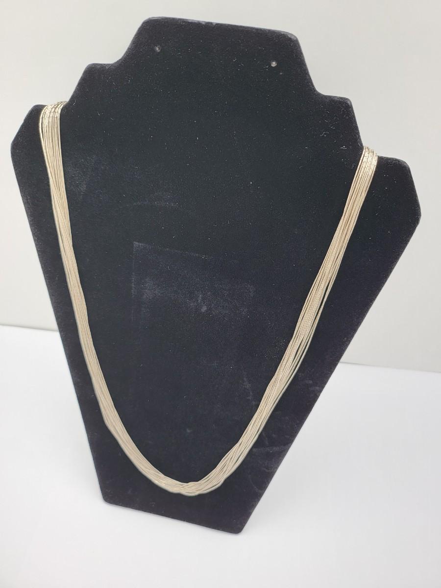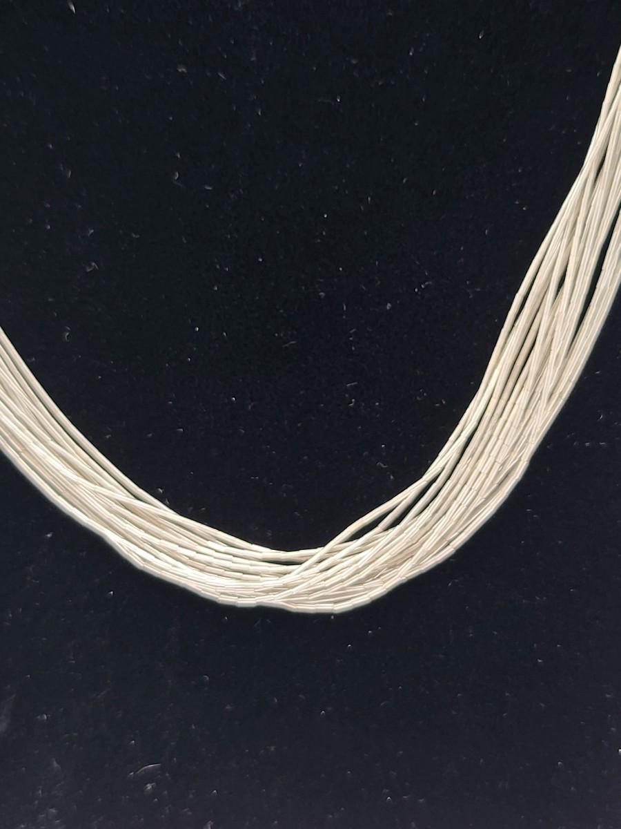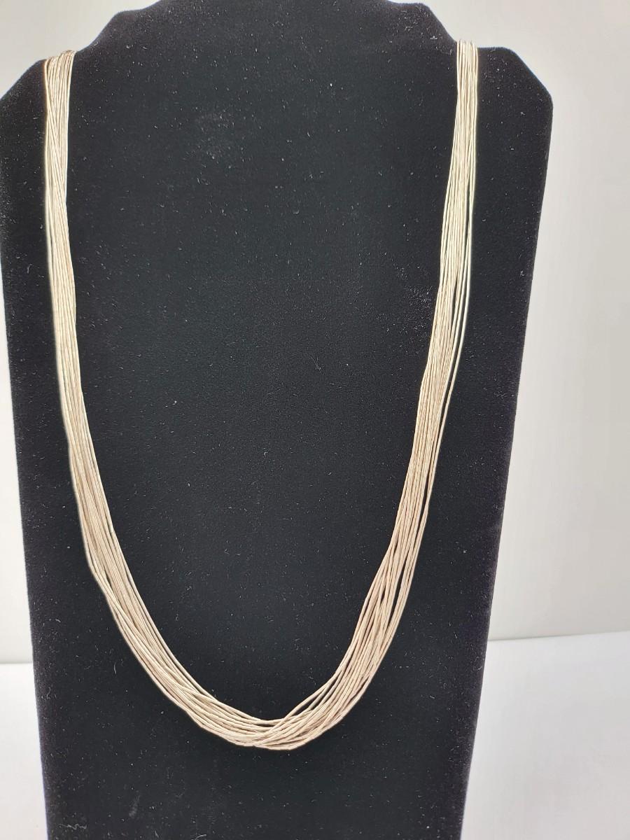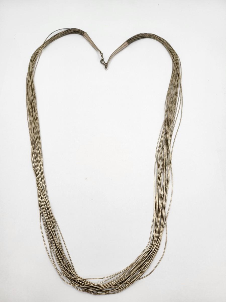 Twenty, sterling liquid silver strands necklace. Measures 28" long. Weighs 30.3 grams.