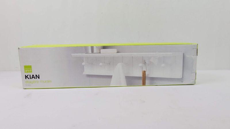 24" Wall Shelf with 5 Pegs, White, Kiera Grace Kian - New