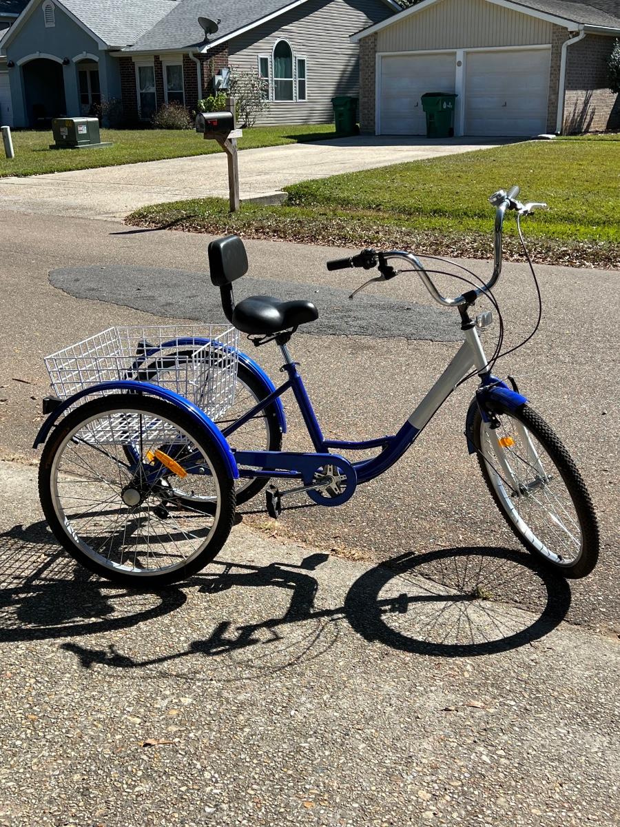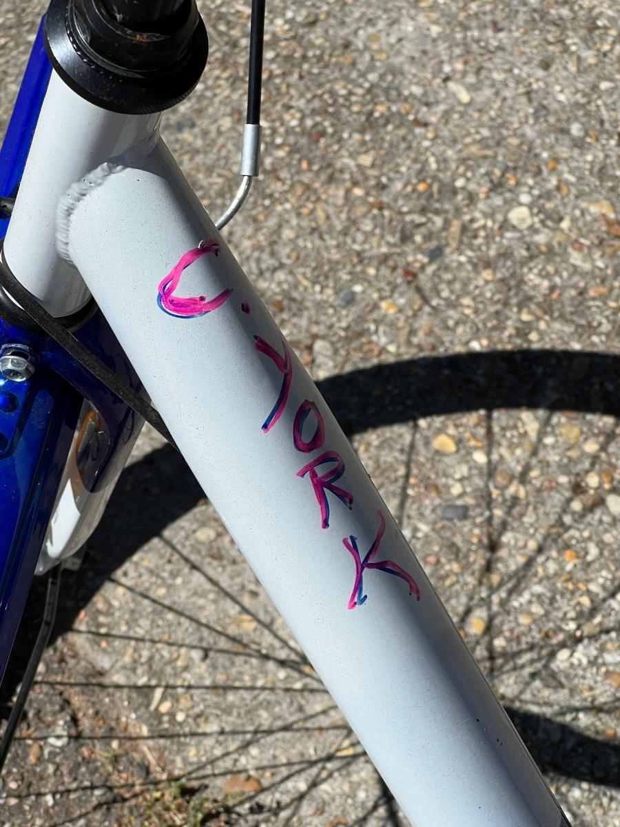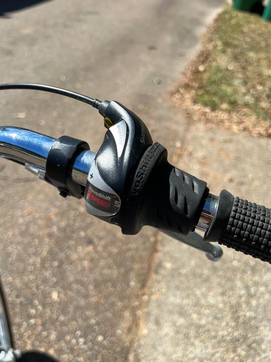 Rides well. Has 7 speeds. No name brand found. The ladies name is written on the bike in pink marker, just needs to be cleaned off.